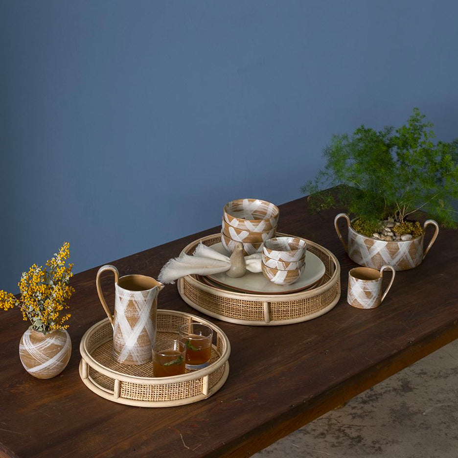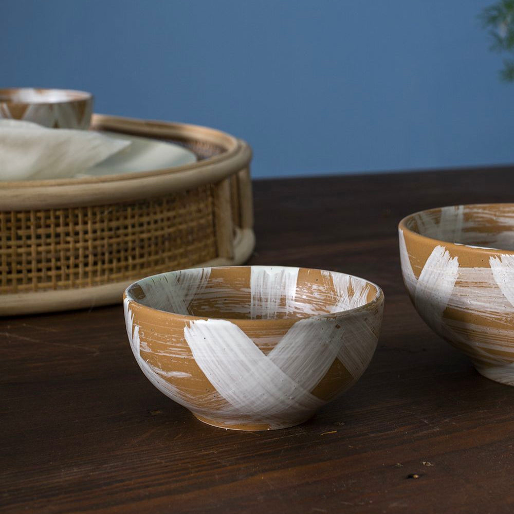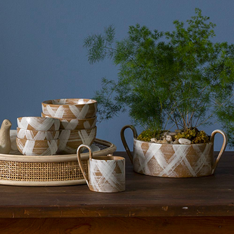 Each piece in the Levy Collection features dark clay and a hand-painted white glaze that lets its natural texture show through. Beyond the stunning two-toned design, the Levy Bowl is also food safe and beautiful enough to bring art to your tabletop. Holds 7.5 oz.