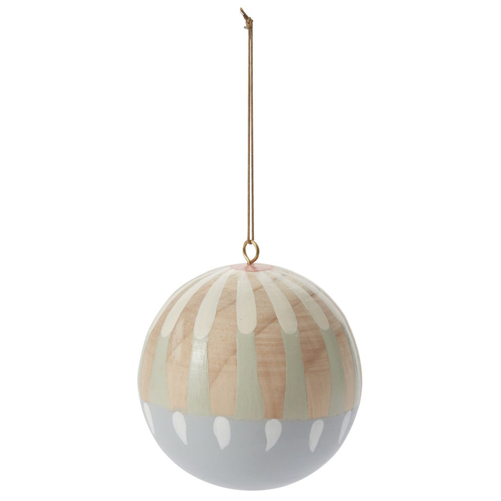 Add a natural, woodsy feel along with a modern style to the Christmas tree or garland with the handmade Leiden Ornament. Featuring a delicate, hand painted blue, white and green design on pine wood, this ornament offers wintry hues to holiday decor.