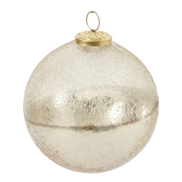 Light reflects beautifully off the metallic gold, textured glass Northern Lights Ornament. This small art piece offers a modern look to the Christmas tree or garland and layers nicely with other classic ornament styles.
