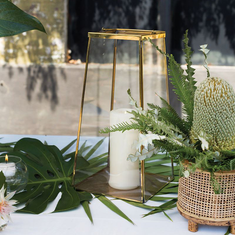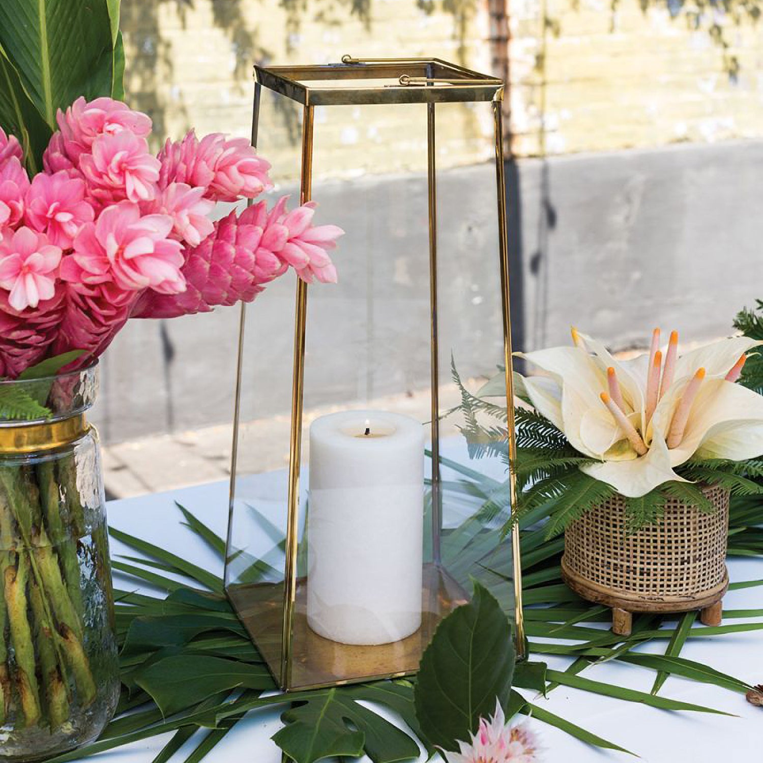 In iron with a gold finish and modern silhouette, the Paramount Lantern comes in 3 sizes and is a unique choice for your next wedding or event.
