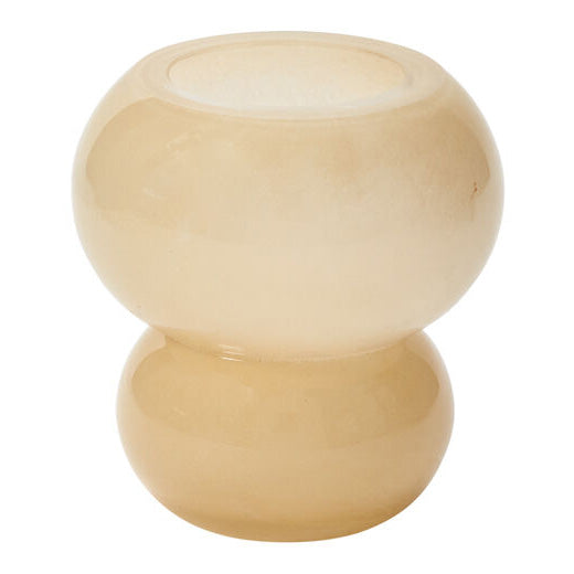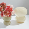 Add a bit of modern whimsy to your displays with the handmade glass Pollinator Vase, featuring 2 unique stacked spheres for a trendy bubble look. An opening size fits a few statement stems. With its neutral, soft yellow color & modern shape, this colorful flower vase is a florist staple & an on-trend wedding & event vessel that can transition easily for everyday use, particularly as a stand-alone decorative piece.