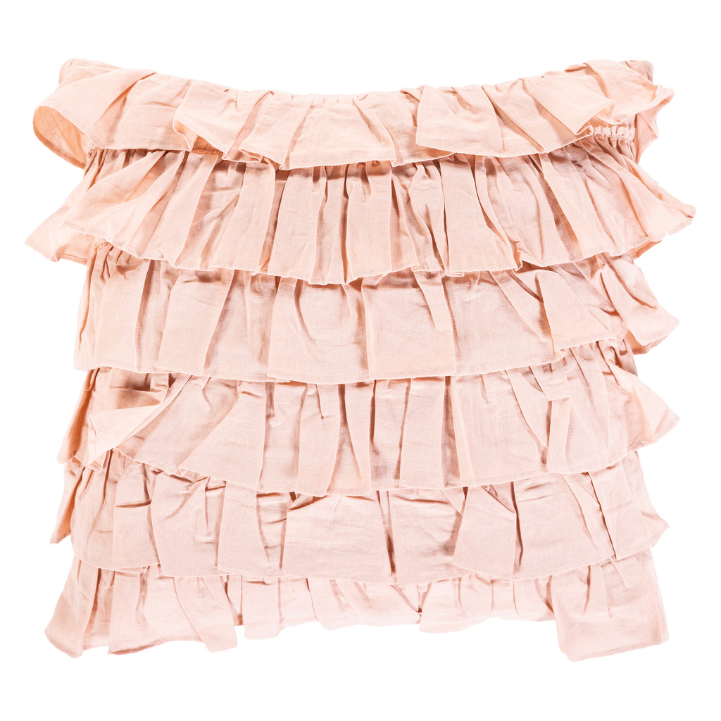 The meticulously woven construction of the Sweets Ruffle Throw Pillow boasts durability and will provide natural charm into your decor space. Made with linen and cotton in India. Spot clean only, line dry.