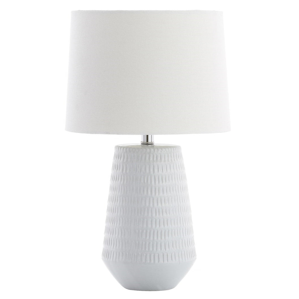Inspired by the work of modern sculptors, this contemporary table lamp brings high style to the living room. Crafted with a subtle, delicate texture, its bold White finish is refreshing and light. Its tapered shade casts a welcoming glow.