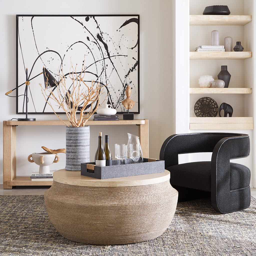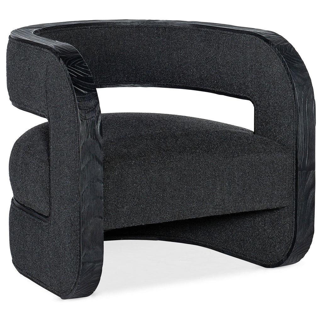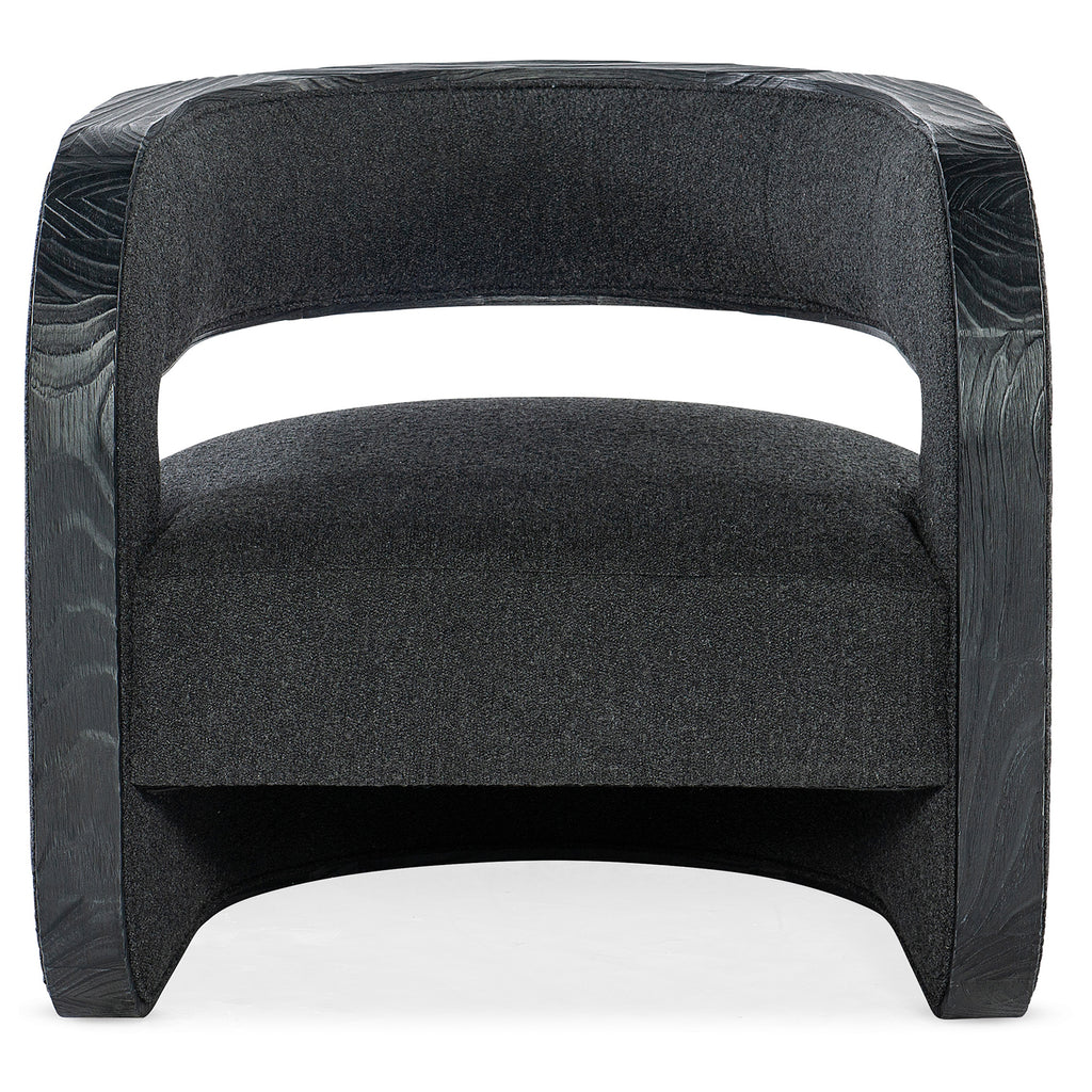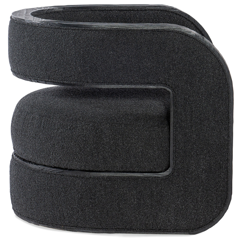 It looks like a piece of decorative art while offering cozy comfort. The Burke Accent Chair is crafted of Pine Veneers in a Charred Black finish, and has an upholstered seat and back covered in Wolf Ebony. Charred Black finish is achieved through Shou Sugi Ban, a Japanese technique that creates a look resembling burnt wood.