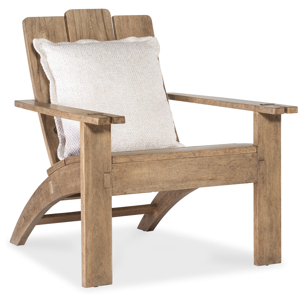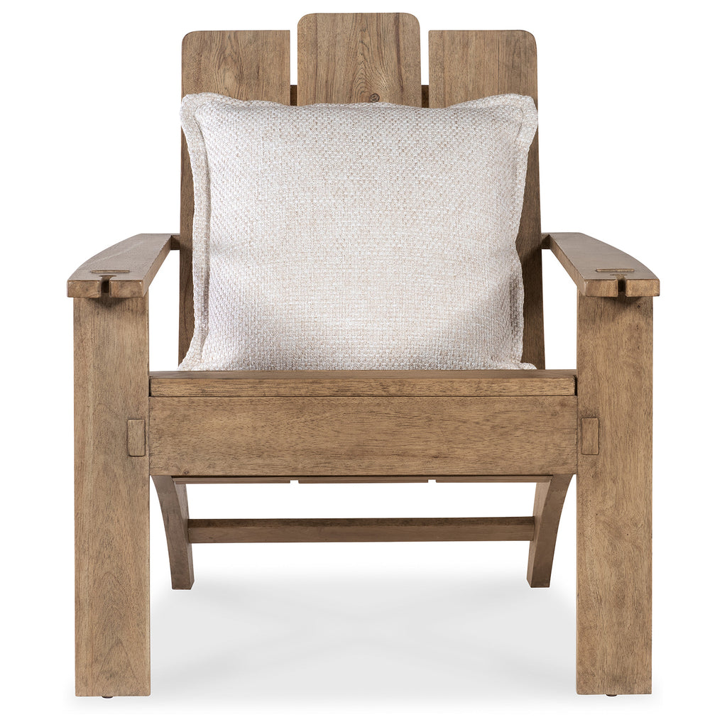 In a classic laid-back Adirondack style, the Vineyard Row Accent Chair is an easy-to-live-with chair crafted of organic Pecky Hickory Veneer in the light-and-airy Sonoma finish. Inviting you to linger, the chair features a plush loose pillow covered in the White Zin fabric, and convenient slotted arms perfect for holding wine glass stems.