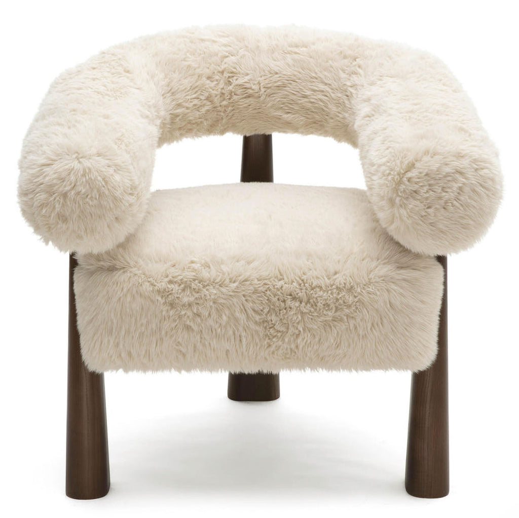 • Vegan shearling upholstery complemented with natural ash wood legs