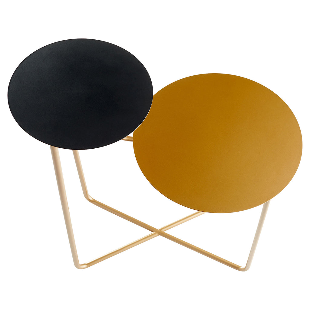 This two tiered table is regally gilded while its modest table tops are contrastingly rendered in a dark monochrome. An accent table is always a must-have, whether nestled next to your sofa or serving as a nightstand in your master bedroom. The Deja Vu table is made of iron and features two separate circular tabletops, one on the base level and another raised above it. Standing at 23.5 inches this compact table is great for small spaces.