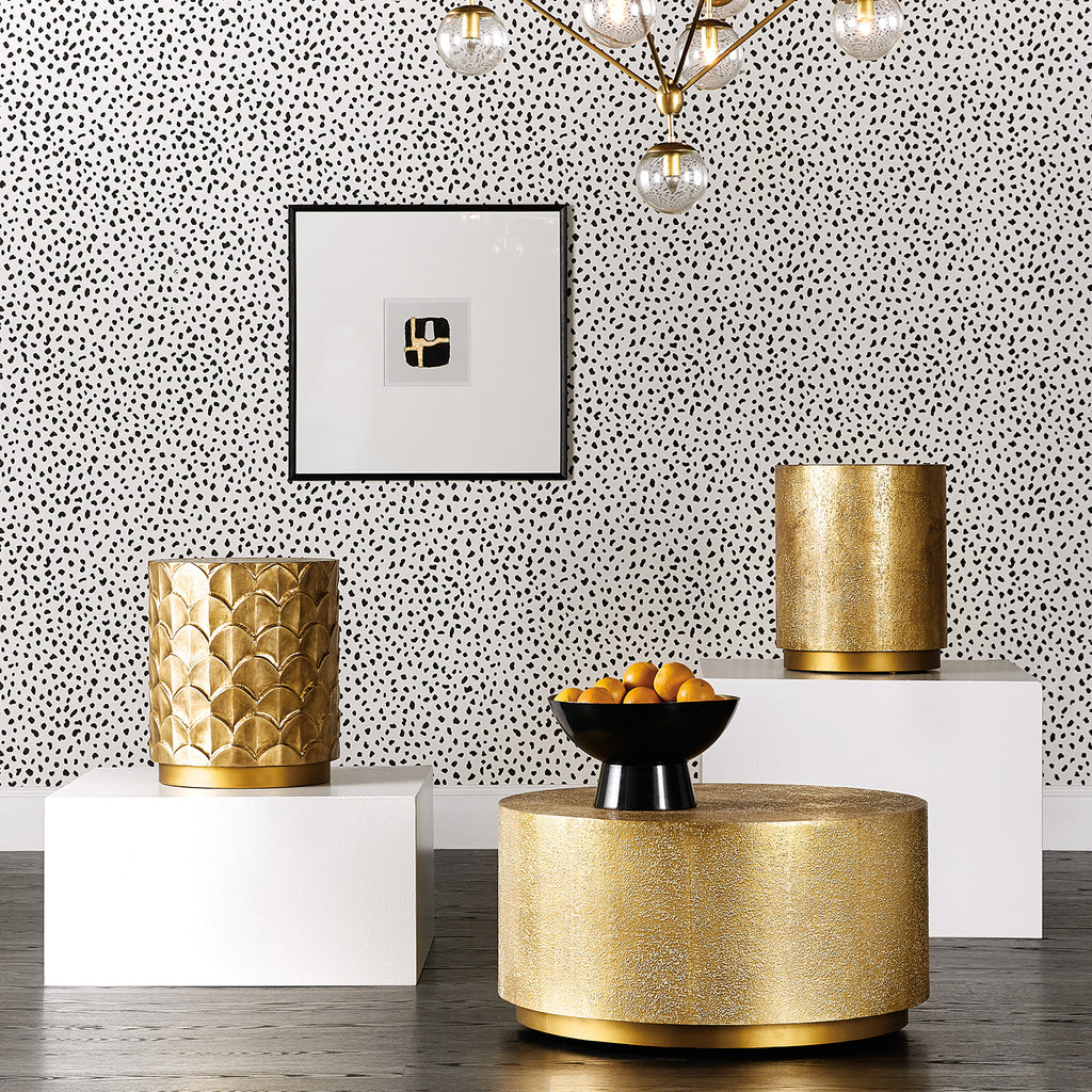 Timeless yet fresh, the Audra Round Accent Table gives you a touch of glam that’s still casual through a magical bit of textured brass foil covering. With a welcoming round shape, the table is crafted of Mango Wood and brass foil and slightly elevated on an iron plinth base.