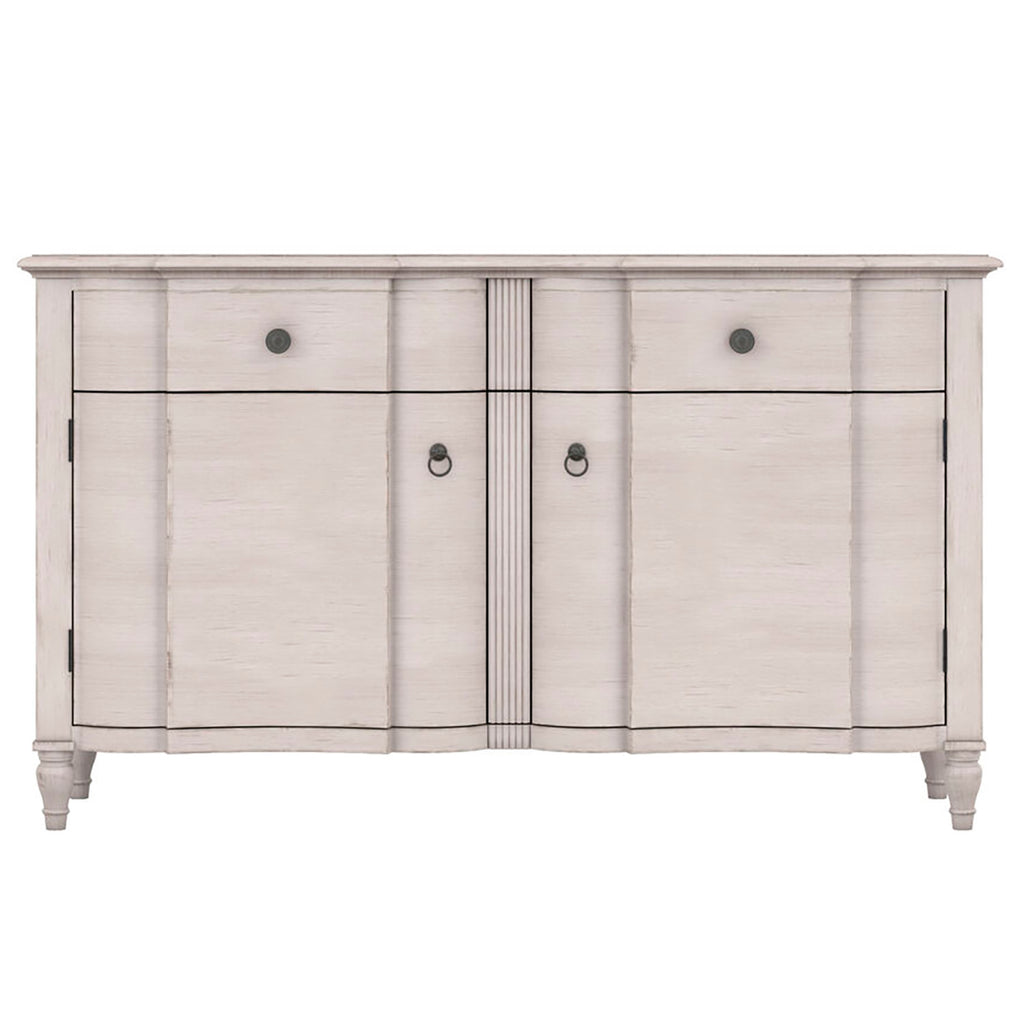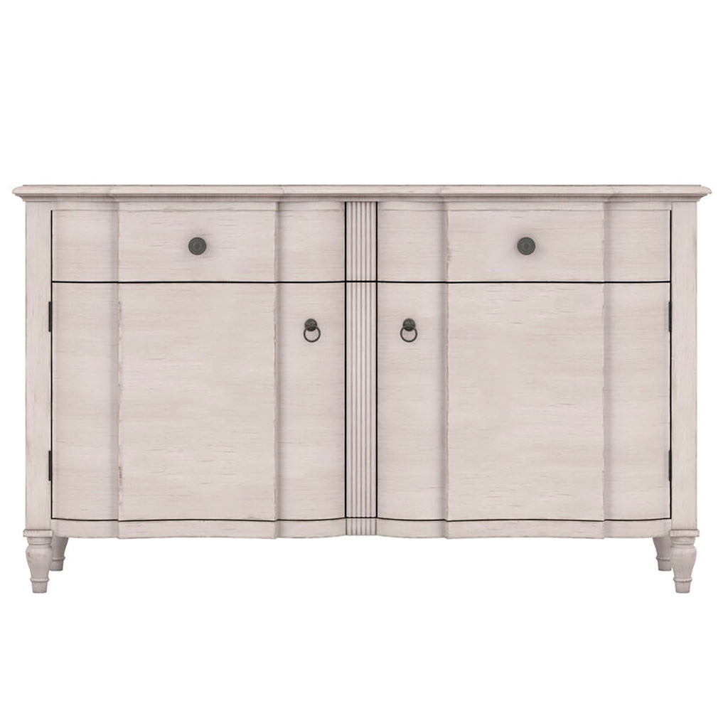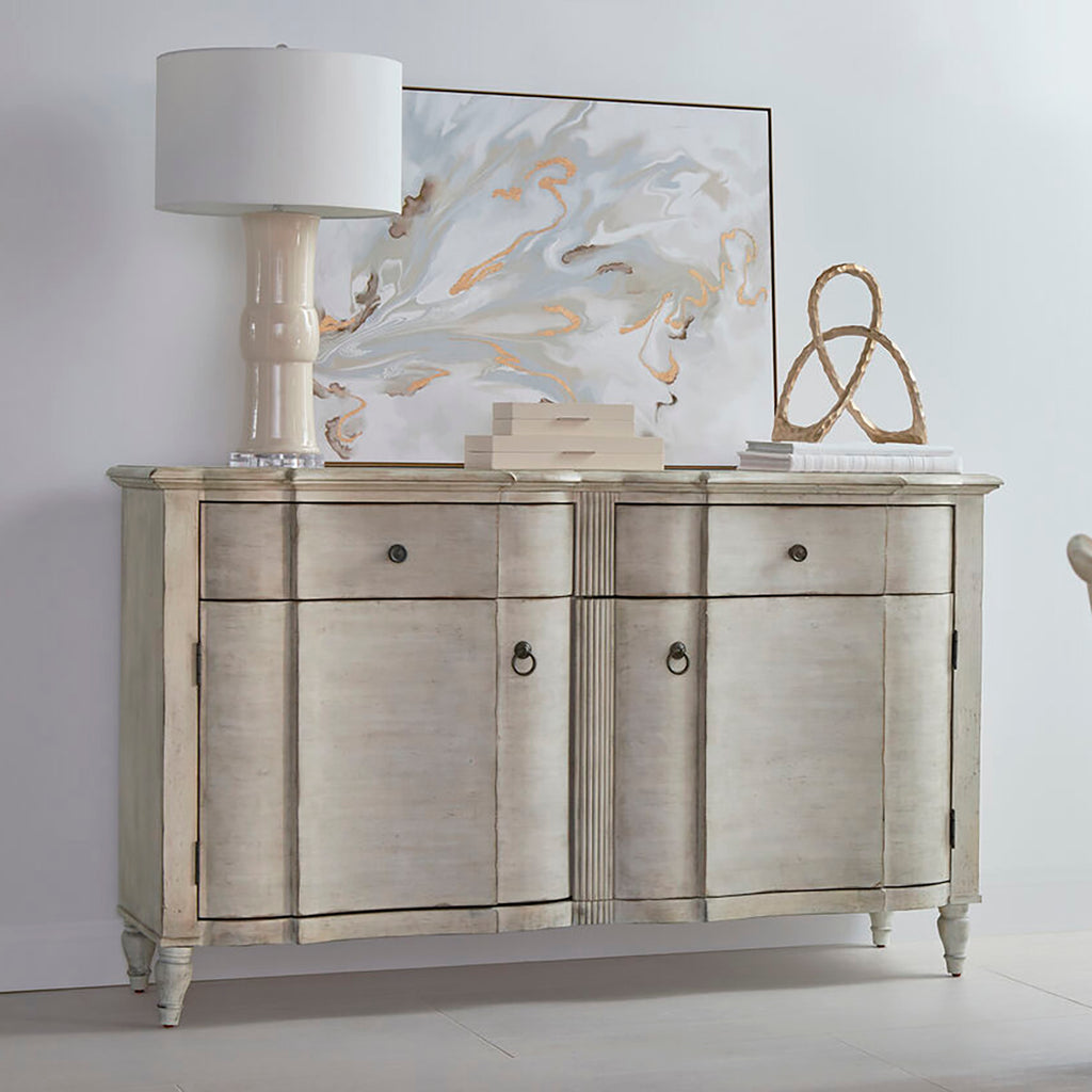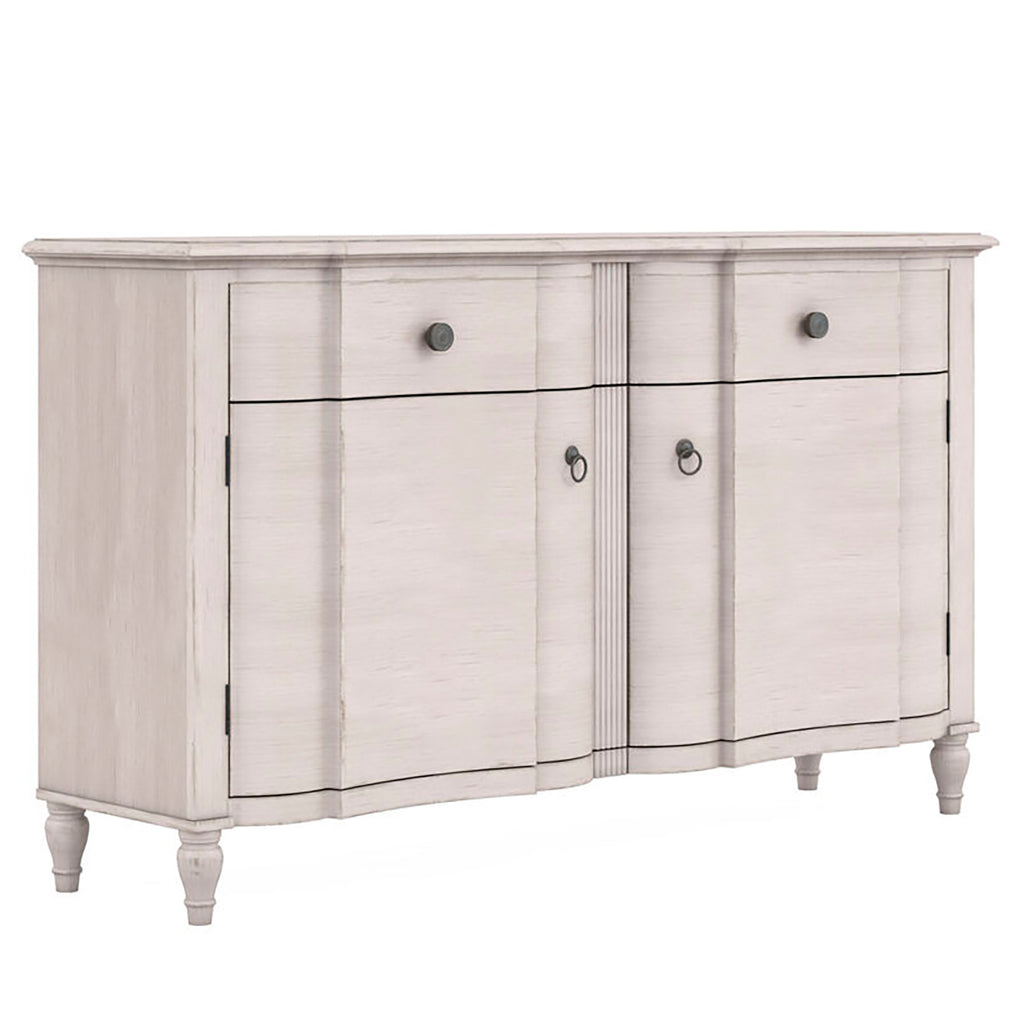 Enhance your dining room with the A.R.T. Furniture Alcove Buffet, a stunning piece that combines traditional style with exceptional craftsmanship and relaxed finishes. Featuring shapely drawer and door fronts with reed detailing in the middle of the case, this buffet exudes sophistication and offers ample storage for your dining essentials. With its felt-lined drawers, adjustable shelves, turned wood legs, and burnished brass hardware, this buffet is a testament to both beauty and practicality.