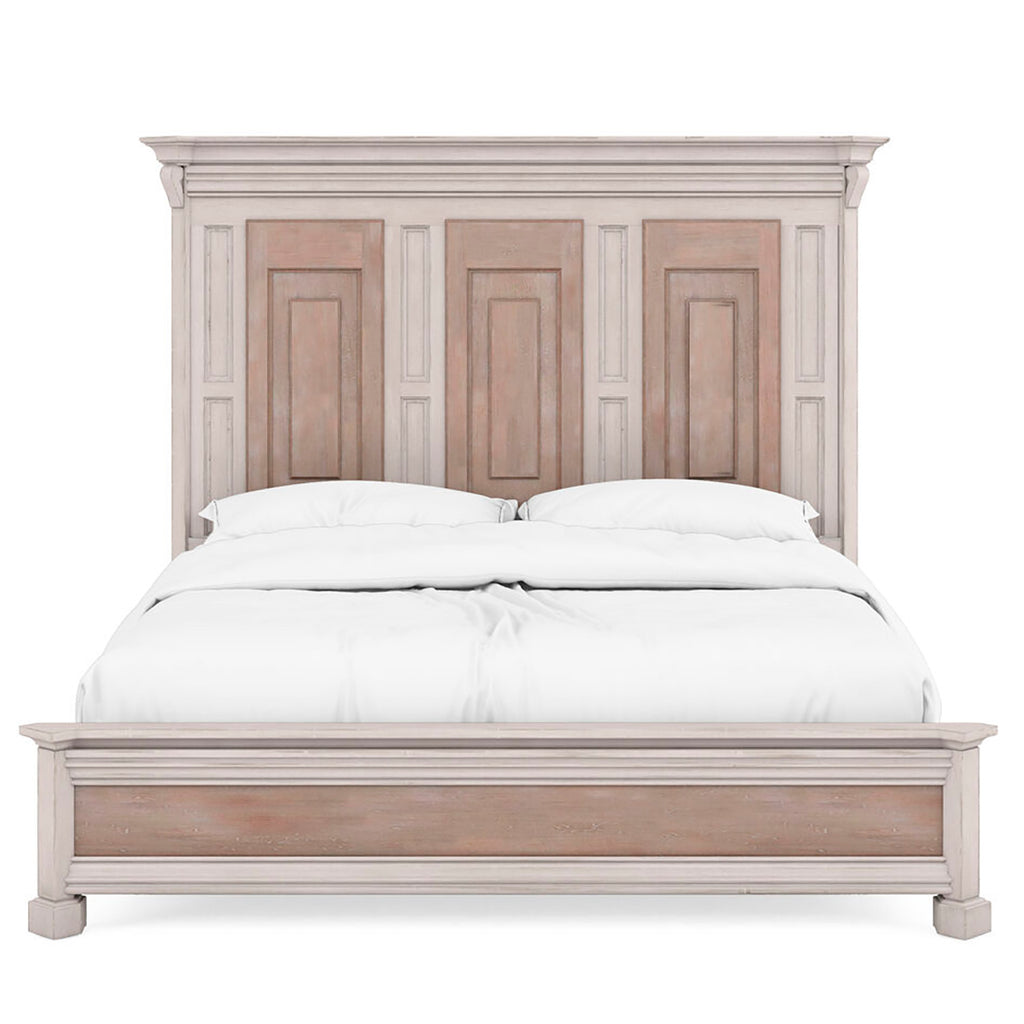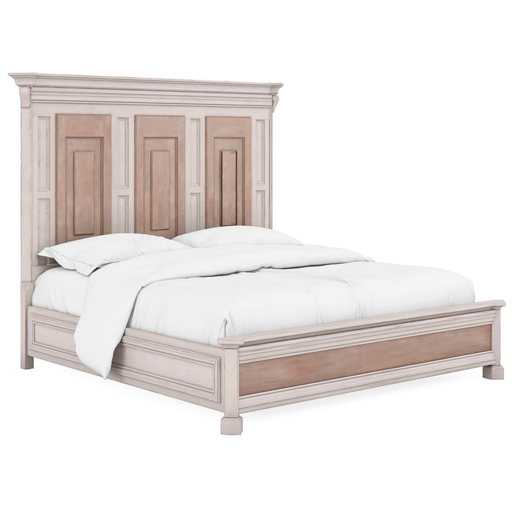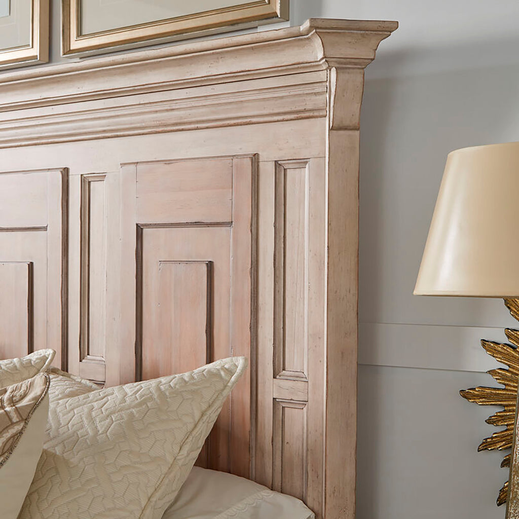 Designed to transport you to the Belgian countryside, the A.R.T. Furniture Alcove Panel Bed encompasses remarkable features that capture the essence of casual, traditional design. Its refined silhouette and intricate detailing make it a stunning focal point that harmonizes effortlessly with its captivating two-tone, distressed finish. The headboard features exquisite decorative panel detailing, adding an extra layer of sophistication and visual interest. The crown molding with scroll detailing at the top of the headboard and footboard further enhances the bed's grandeur appeal.