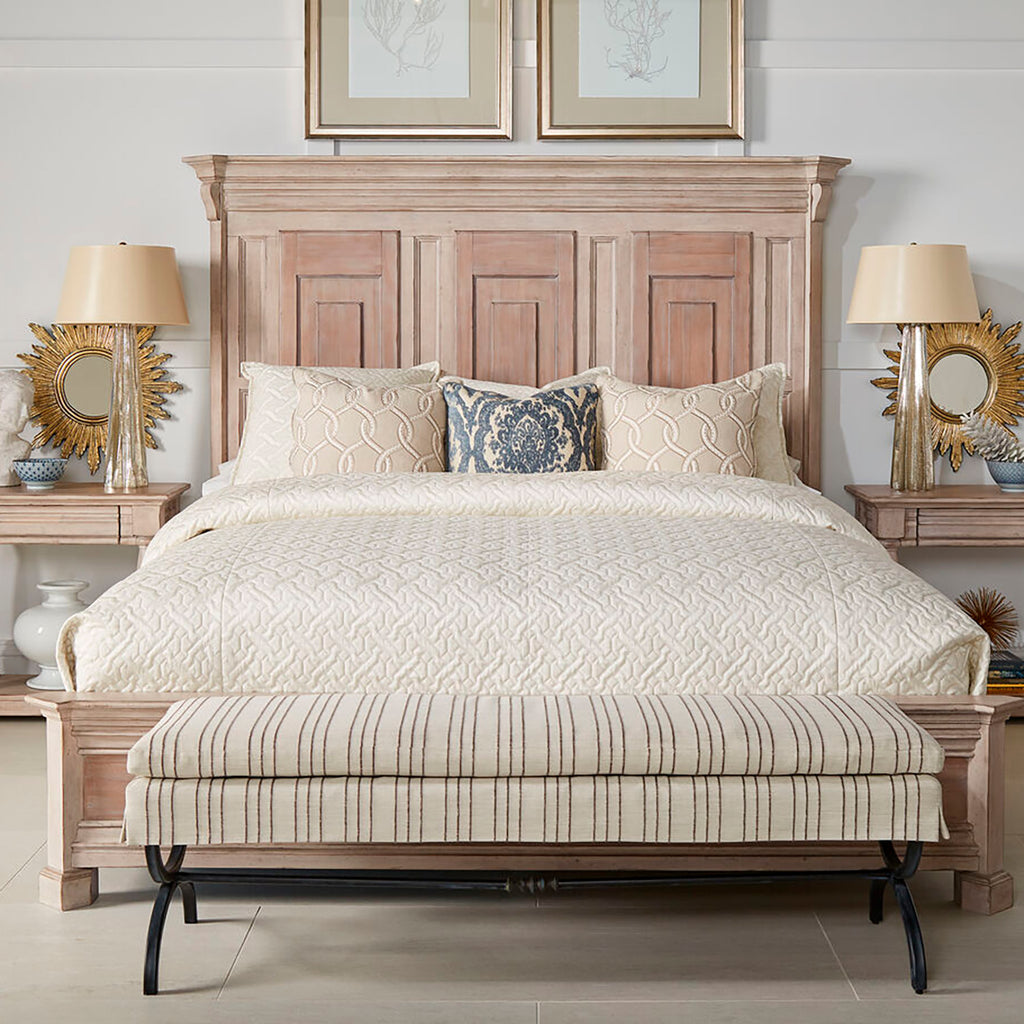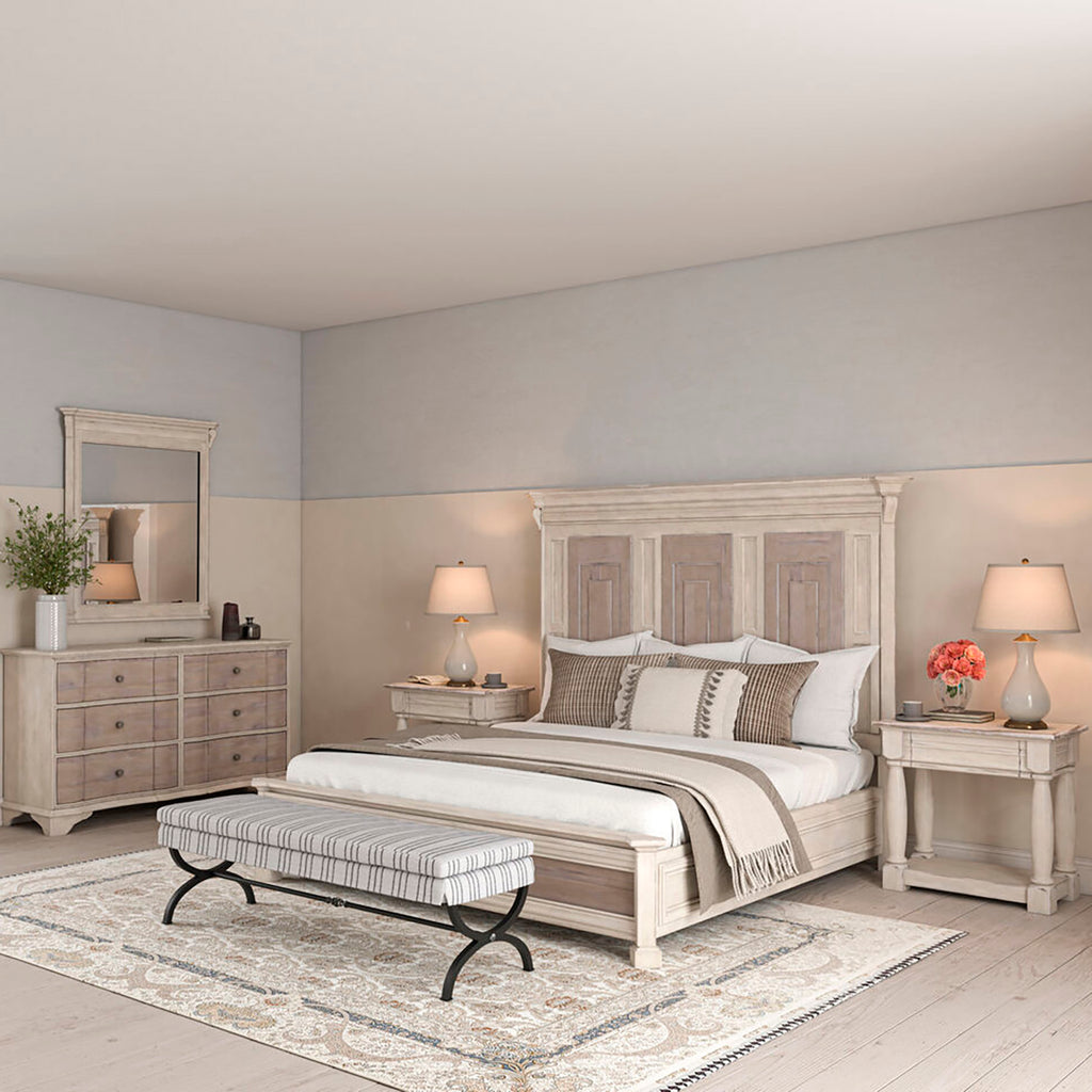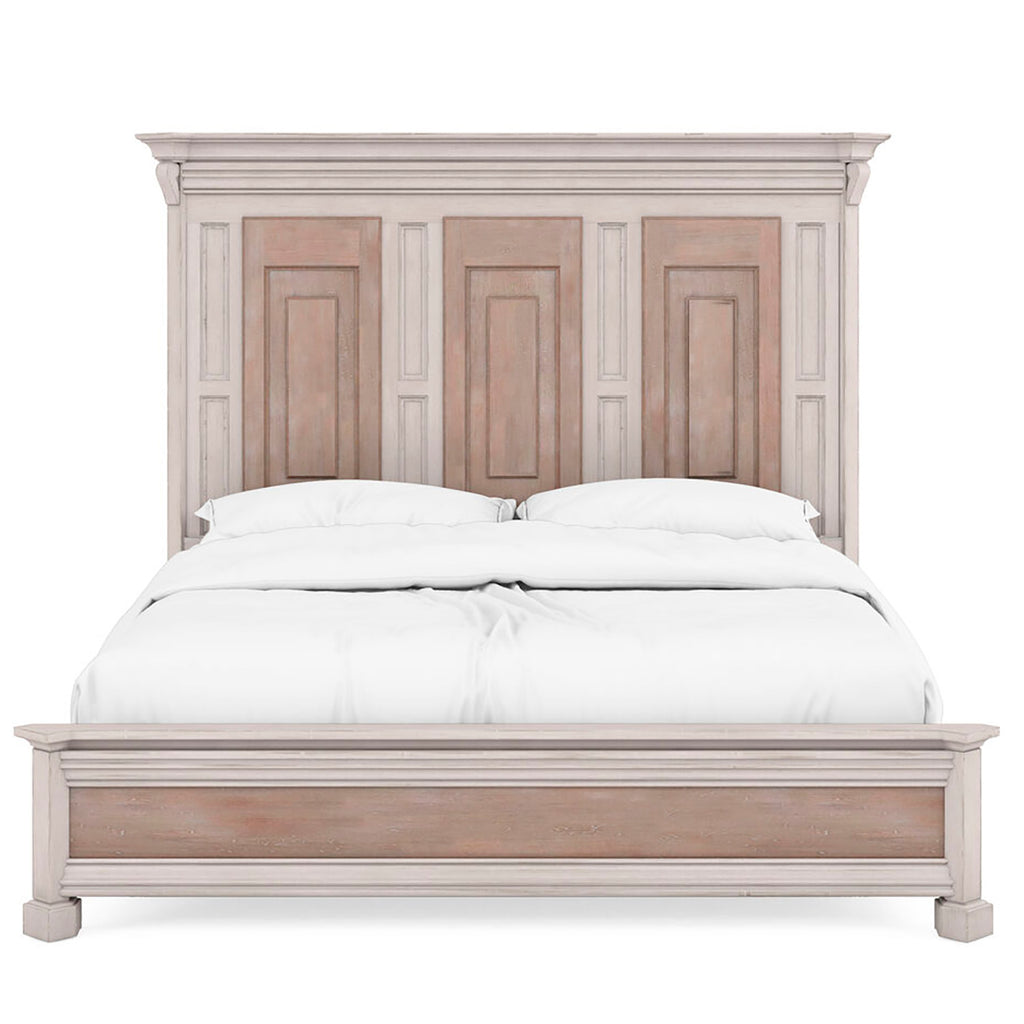 Designed to transport you to the Belgian countryside, the A.R.T. Furniture Alcove Panel Bed encompasses remarkable features that capture the essence of casual, traditional design. Its refined silhouette and intricate detailing make it a stunning focal point that harmonizes effortlessly with its captivating two-tone, distressed finish. The headboard features exquisite decorative panel detailing, adding an extra layer of sophistication and visual interest. The crown molding with scroll detailing at the top of the headboard and footboard further enhances the bed's grandeur appeal.