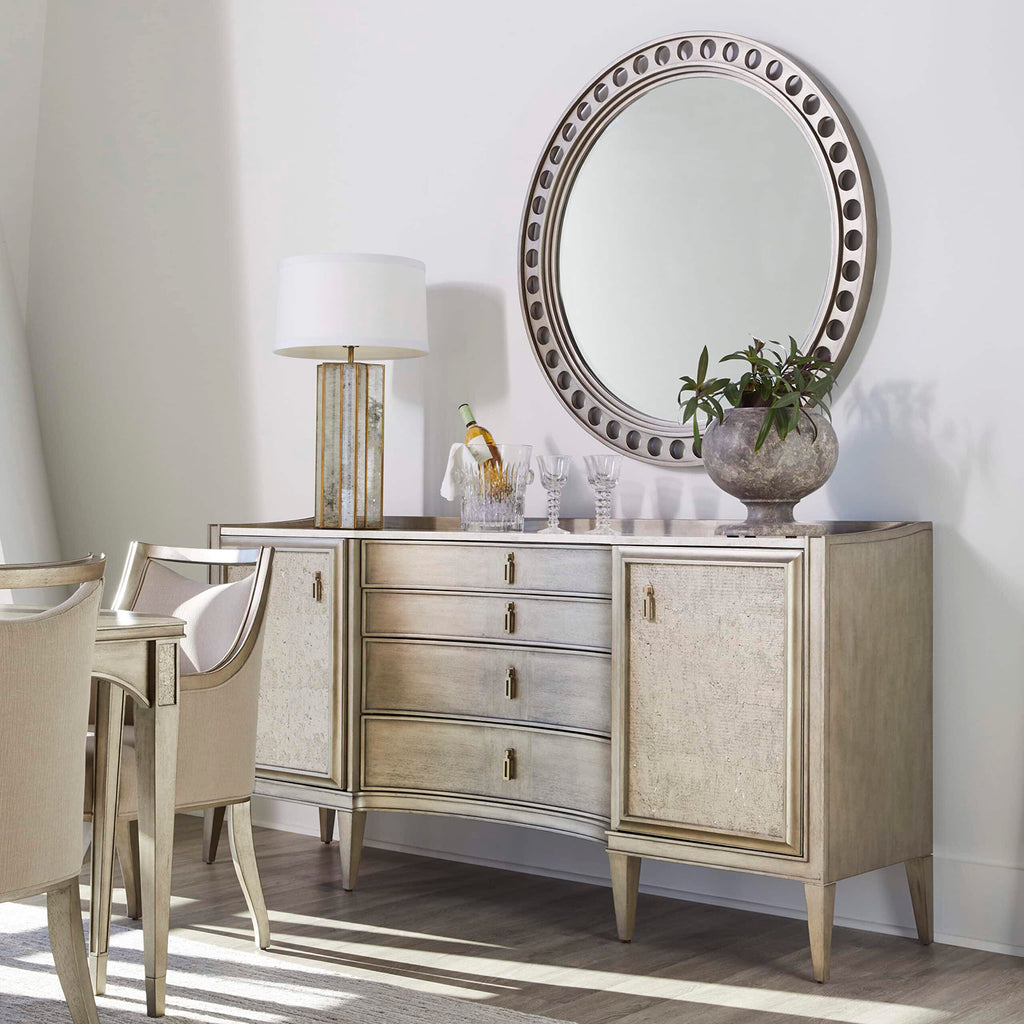 In a world where straight lines dominate, the A.R.T. Furniture Cove Collection emerges as a symphony of sensuous shapes and timeless elegance. Embrace the allure of all that is curvaceous, as classically informed transitional designs meld seamlessly with modern aesthetics. The warm, bronzy wood tones are paired with shimmering cork accents that infuse your surroundings with an inviting charm and adds a touch of eco-consciousness to your space. With Cove, a timeless romance awaits you within every curve, every shimmer, and every detail.