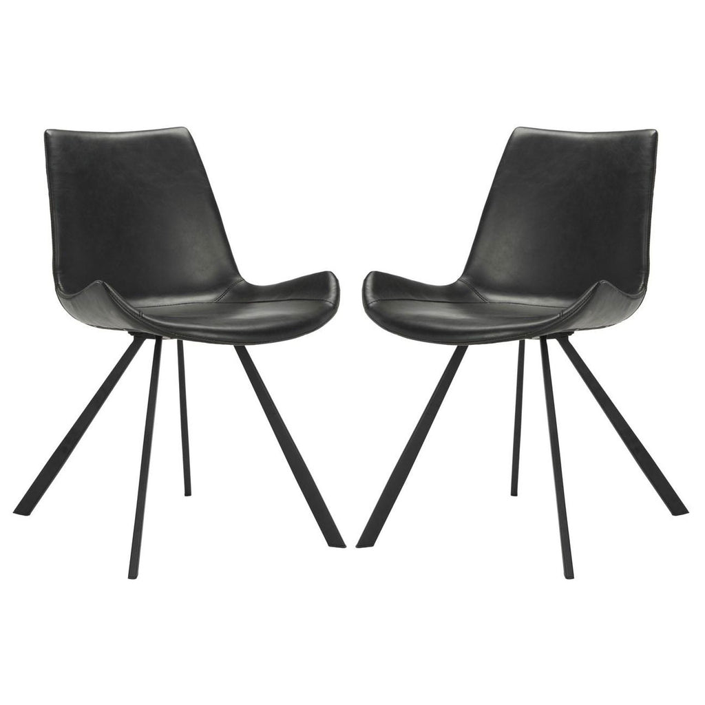 Created as an homage to designs in the decorative arts museum in Paris, this contemporary accent chair makes an artistic statement. Its luxe black upholstery with gentle curves is paired with iron legs to lend modern sculptural style to any dining room or living room. Sold as set of two.