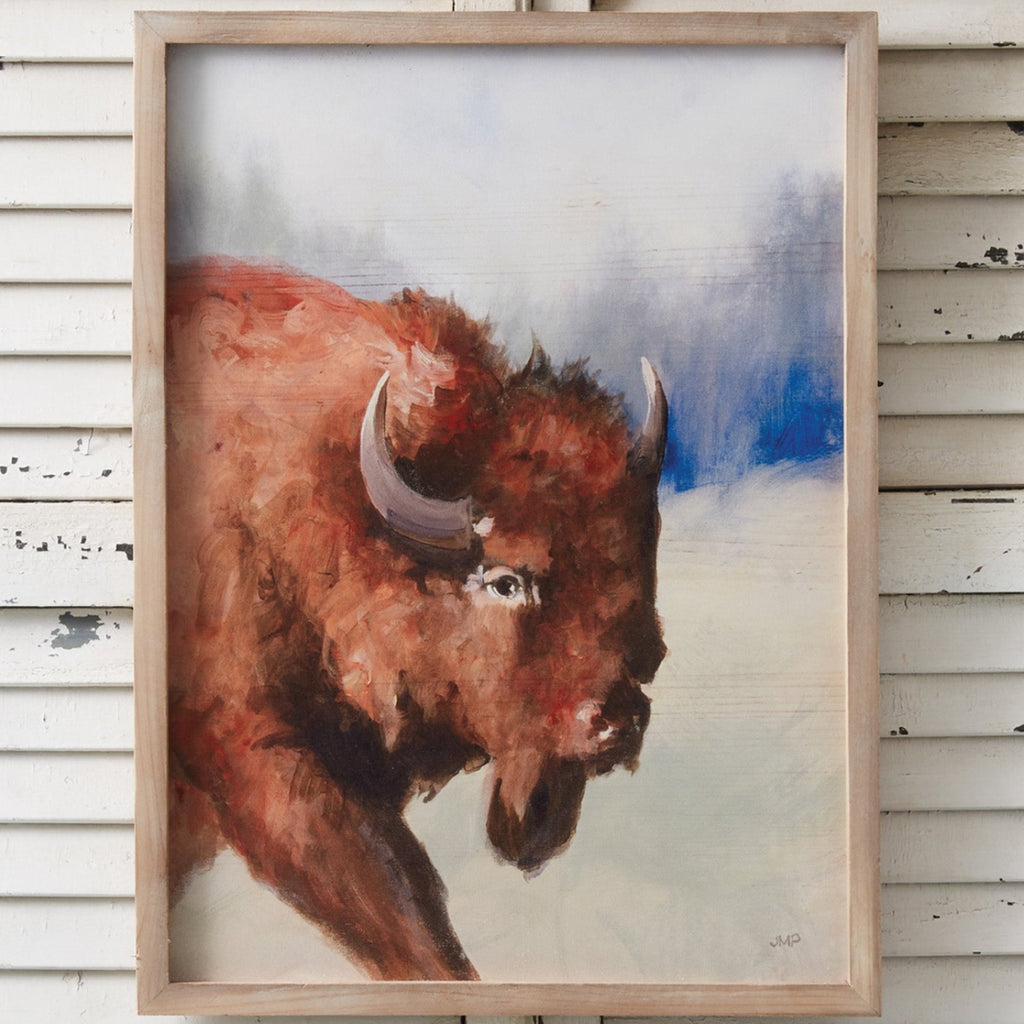 Majestic and burly, this bison creates an eye-catching focal point in a room. Our sign is brimming with western appeal and is an ideal addition to farmhouse decor. To hang, use its two sawtooth hangers.