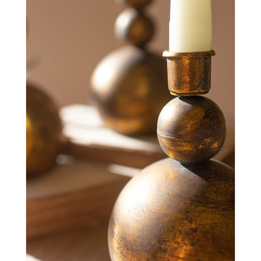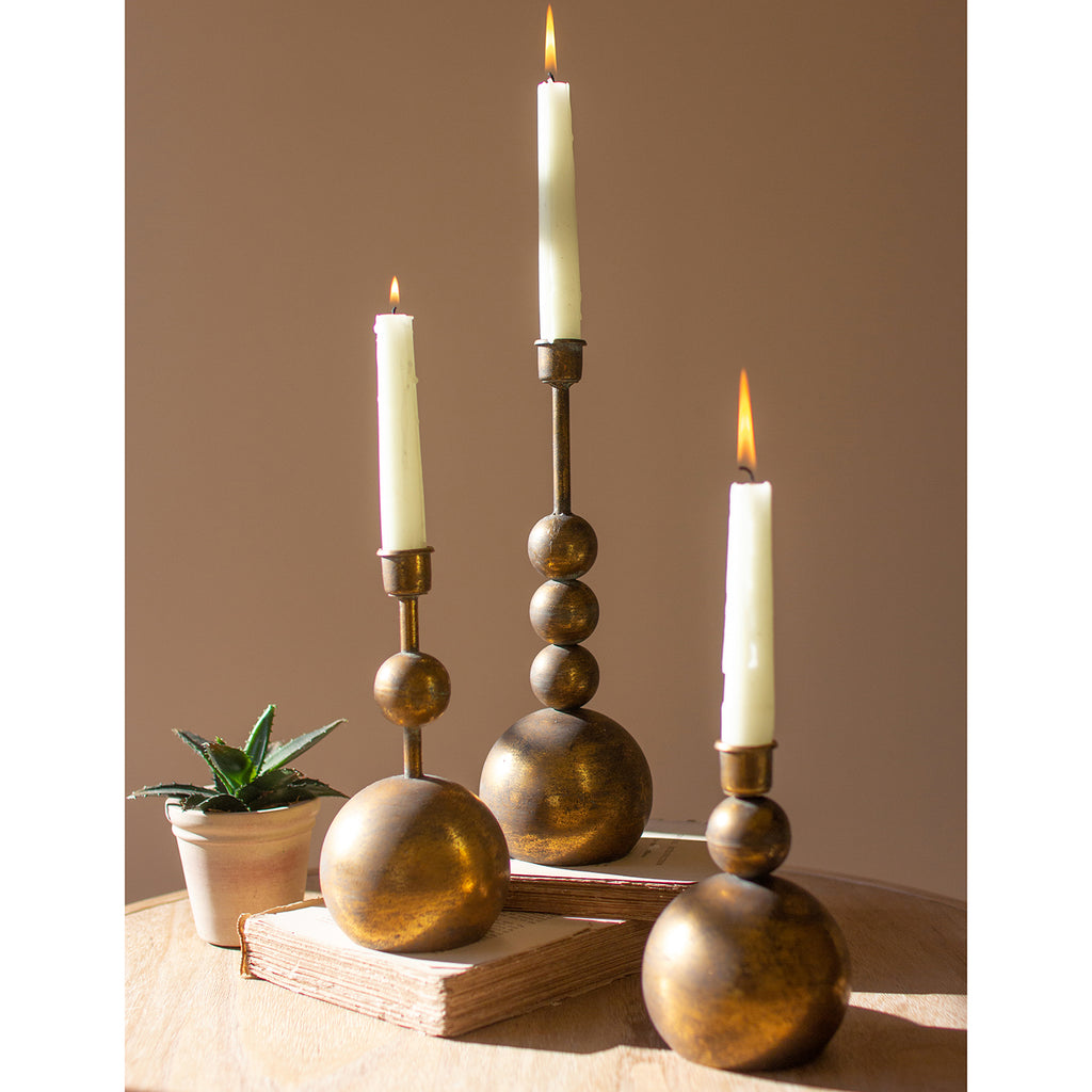 Antique Brass Sphere Taper Candle Holder Set of 3