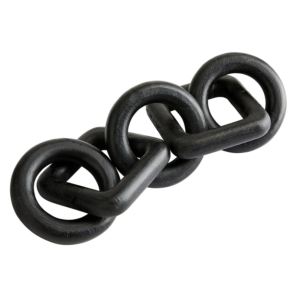 Arteriors Home brings sophistication and style to any interior design project with their collection of decor and tabletop pieces. Crafted by hand, simple geometrics intermingle to form this unique, interlocking Arteriors Brinley wood sculpture. An ebony finish boldly highlights the natural wood grain, establishing a rustic quality that parallels with its modern form. A visual work of art for an entryway console or an étagère in traditional and modern settings. Each piece will be hand-done, lending a one-of-a-kind quality to the designs.