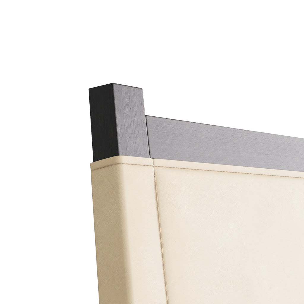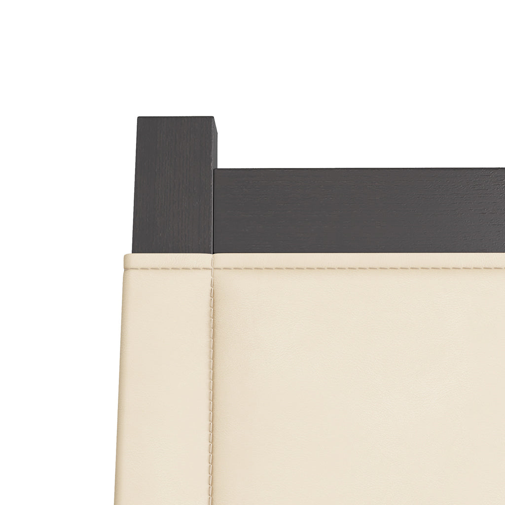 Crafted of luxurious leather and ebony-finished beechwood, this sophisticated design possesses a crisp, geometric silhouette. A t-shaped sling-back balances the impeccably upholstered seat, providing comfort and support. Each square leg is capped in antique brass sabots. Leather will vary.