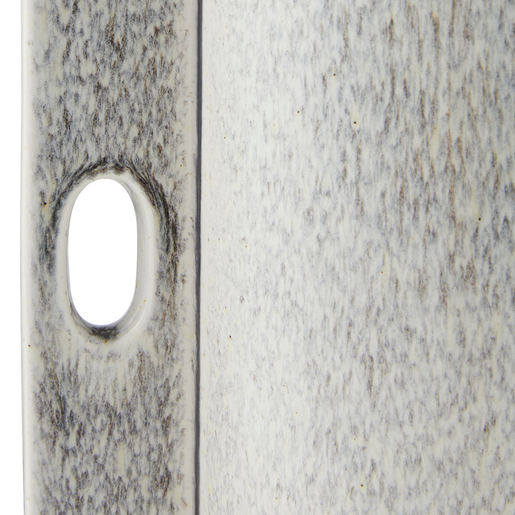 Mid-century ceramics' clean, distilled forms find an update in a double-winged vase. Designed with unique asymmetric handles on either side to catch the eye, the Arteriors Daybreak makes an elegant home for an impactful bouquet. Glazed in an ice-reactive finish. Finish will vary.