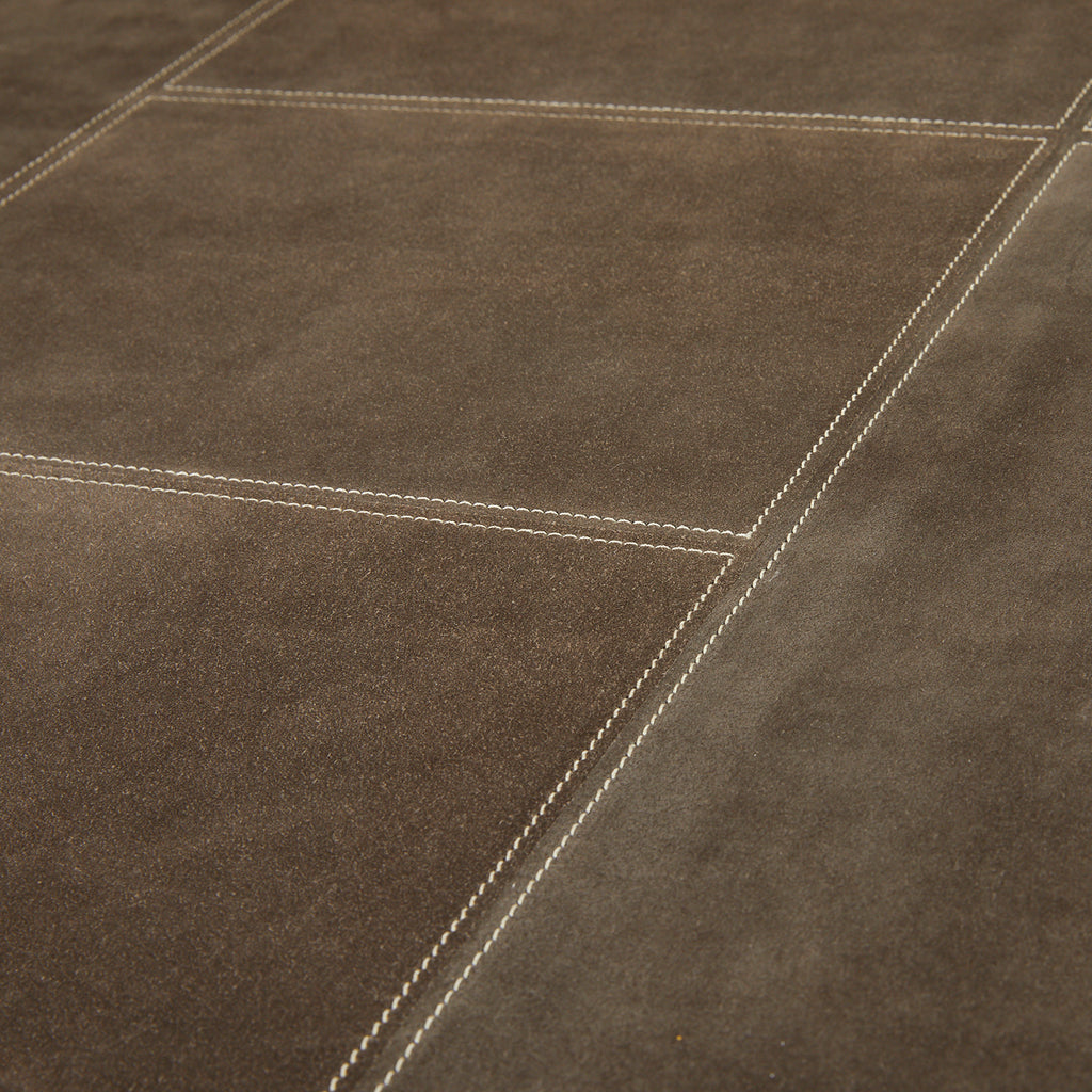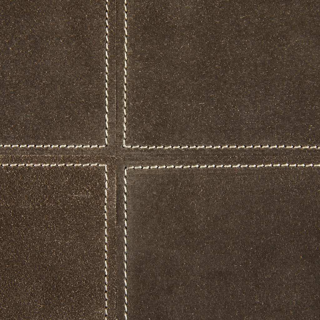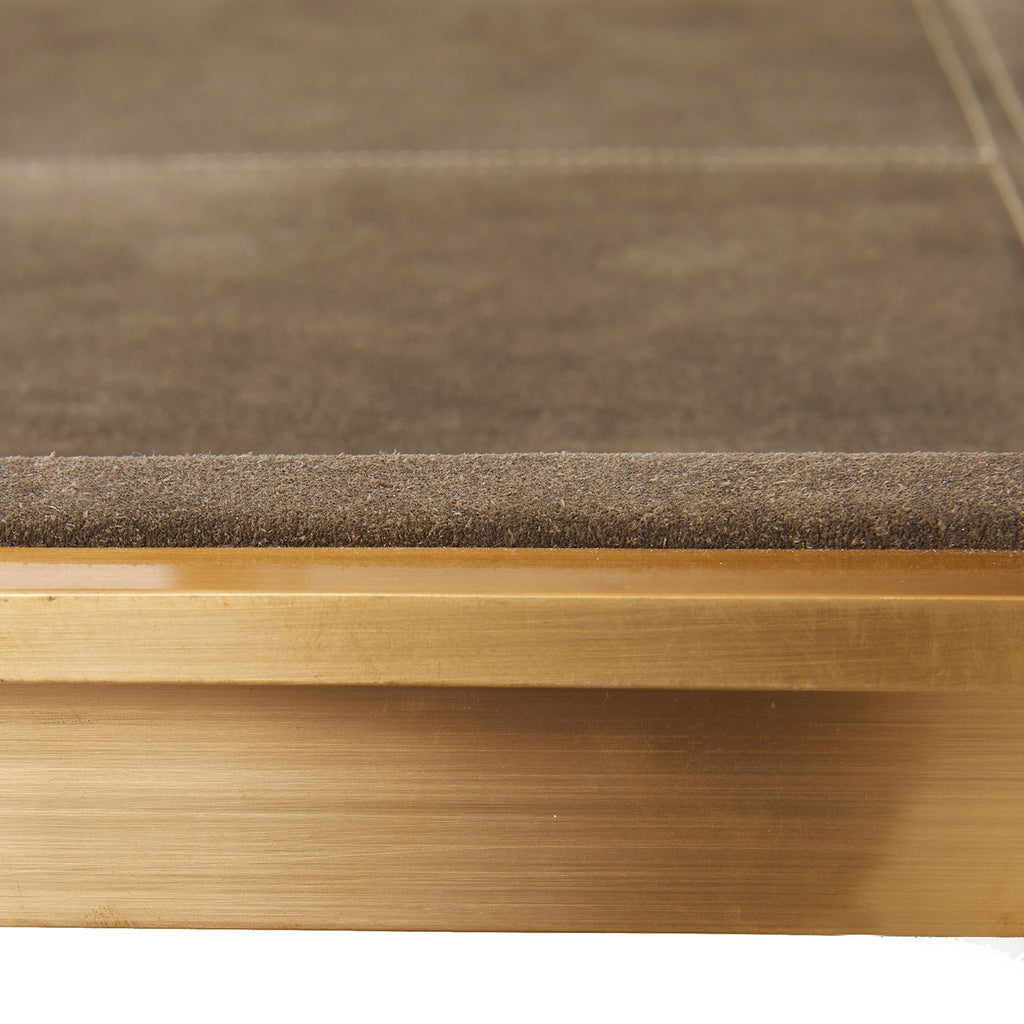 Adorned with asymmetric patchwork stitching, an oversized tray of moss-gray suede makes an impactful addition to any surface. Finished with four antique brass steel handles for easy mobility. Finish will vary.