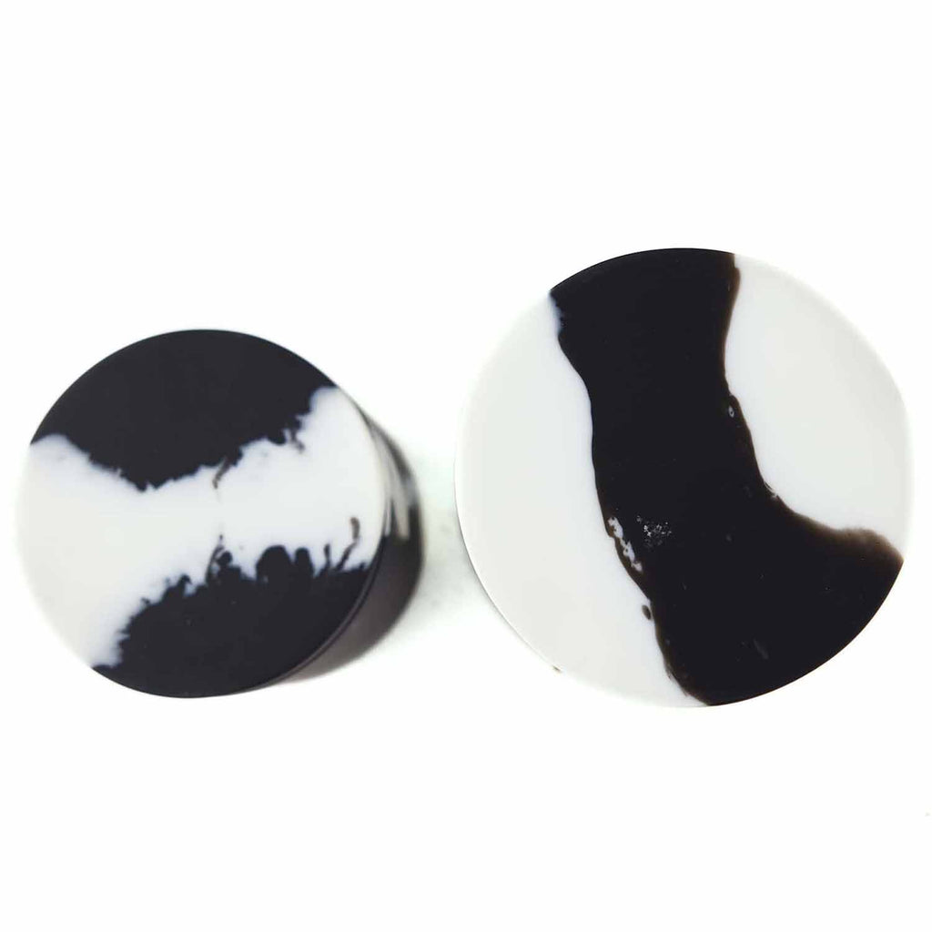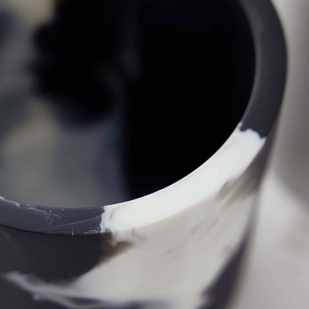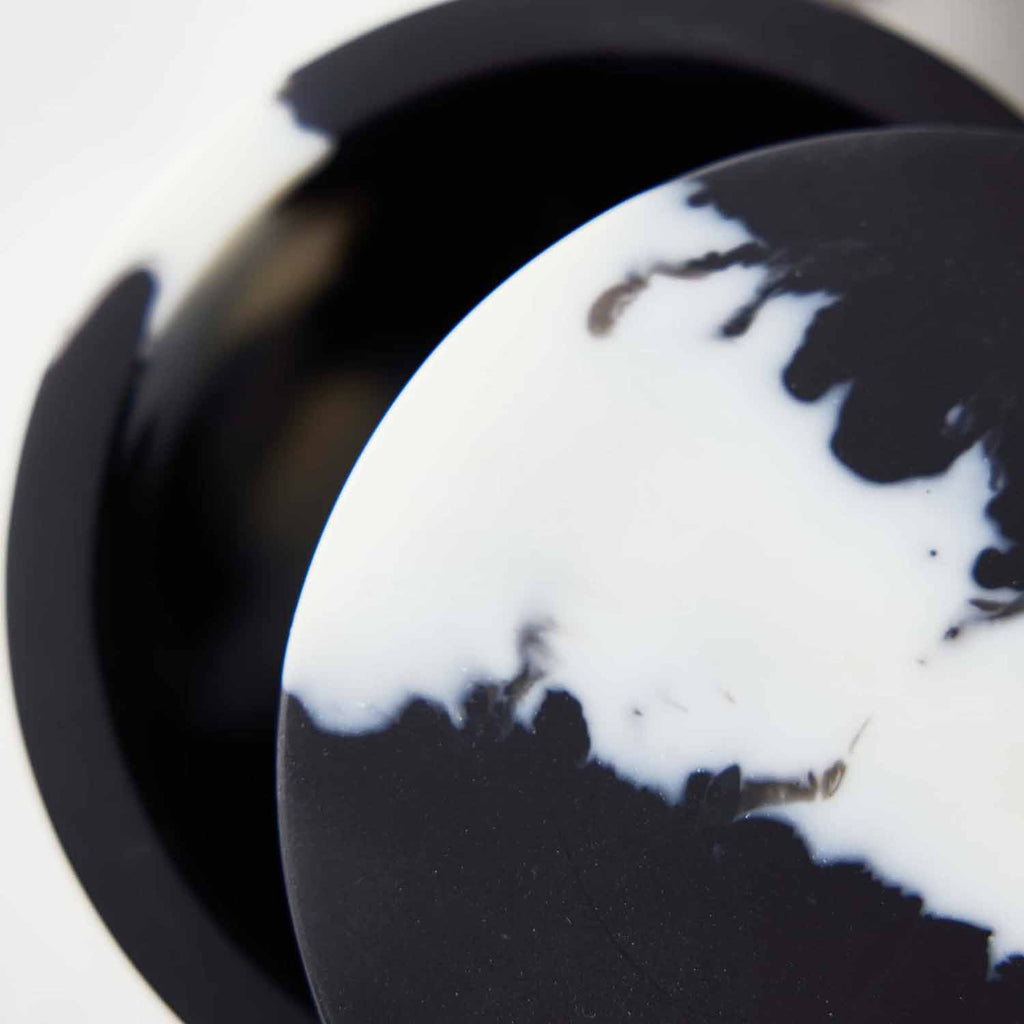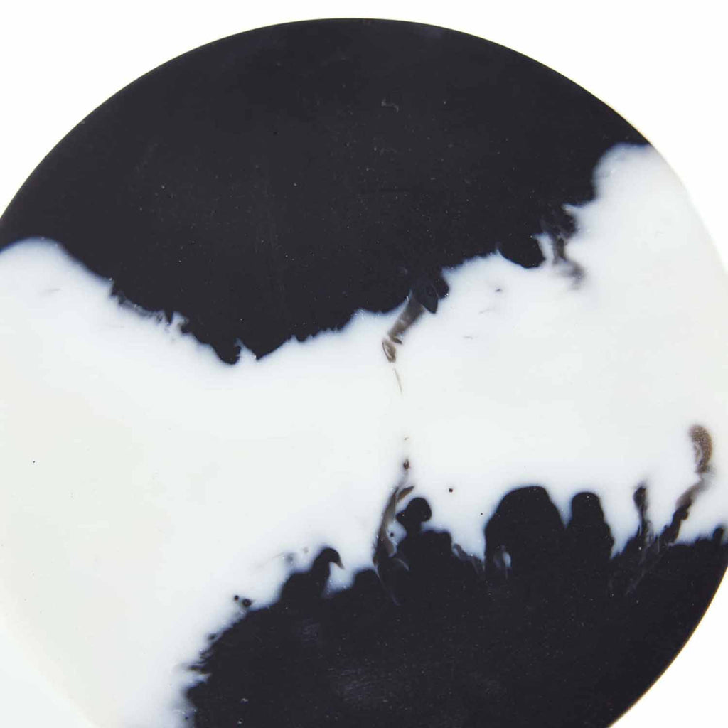 The Arteriors Hollie containers explore the concept of yin and yang by reversing color. A high-contrast combination of black and white sweep the resin vessels, each with its own distinct pattern. The pair of round containers is sure to stun in any space. Finish will vary.