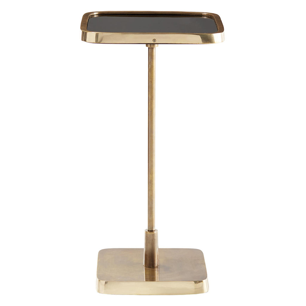 Polished brass on the base and lip contrast beautifully with the vintage brass pedestal and black mirror top. Group with the round rectangle counterparts to create the ultimate trifecta.