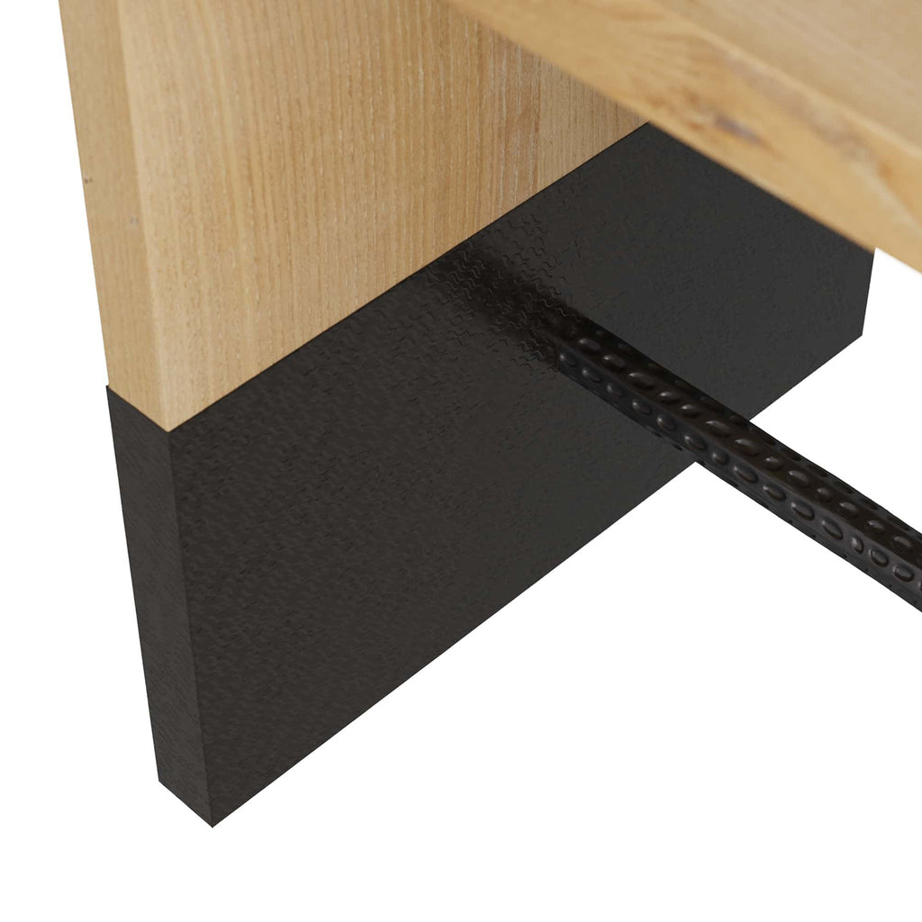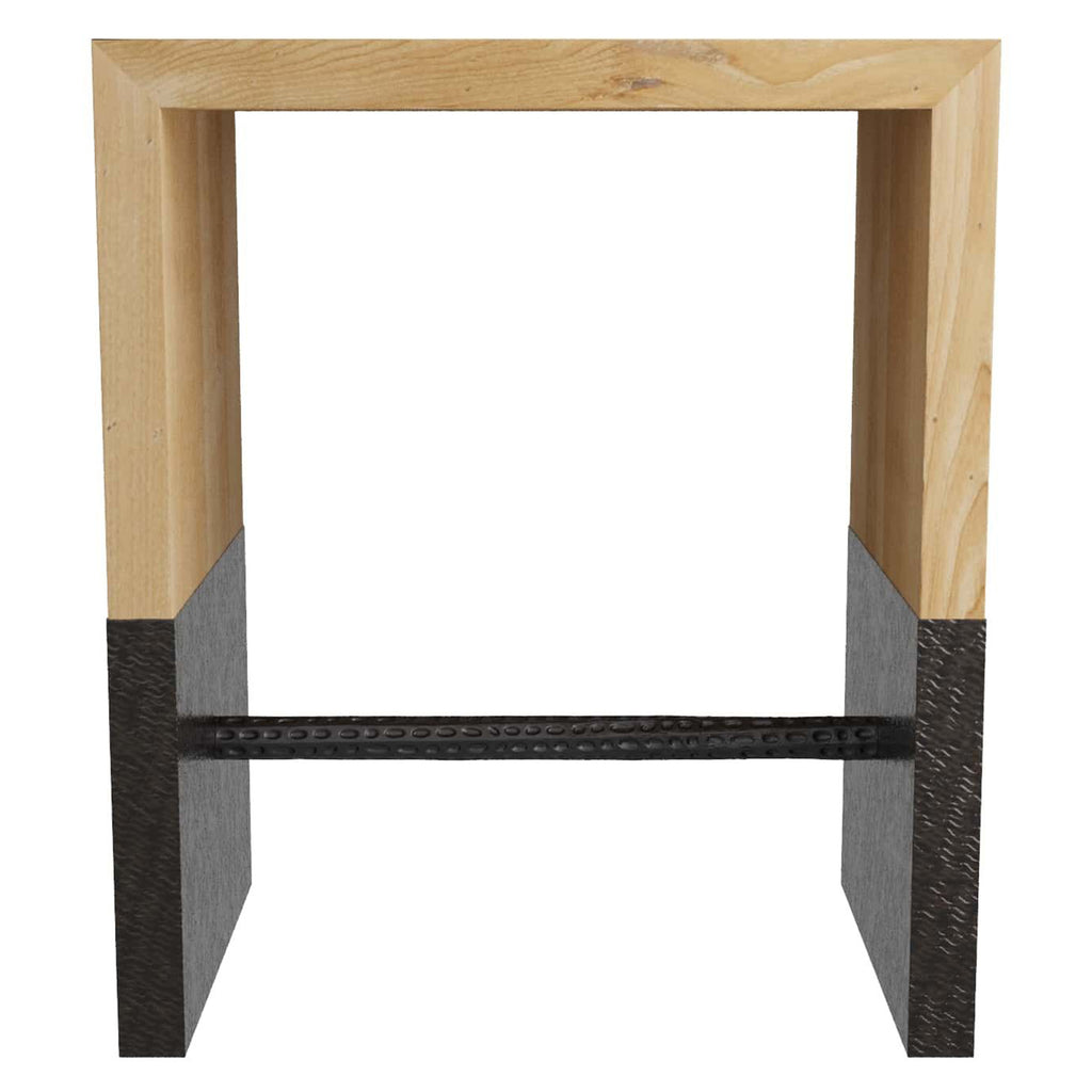 Hardly a bystander, the Arteriors Lyle end table will command any entryway. The bronze brass clad sabots wear decorative pitting like a coat of armor fit with an iron spear. The rich blonde stain enhances the oak grain, highlighting the attention paid to this fine piece of furniture. Finish will vary.