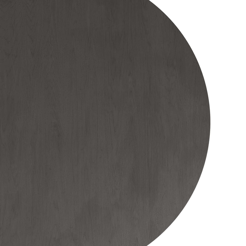 Designed to make a memorable first impression, the base of the bold Arteriors Samara table is fashioned with carved cutouts to resemble the shape of a flower bud. The round pedestal table, in ebony mahogany, can stand out as an entry or dining table. Finish will vary.