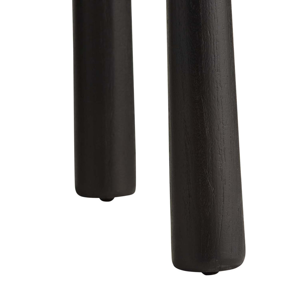 The Arteriors Solange dining chair is rendered in playful shapes and artisanal materials. The clever chair, created in sable finished mango wood and woven, tobacco-washed paper cord, features a carved opening at the top of the frame for easy carriage from room to room. Finish will vary.