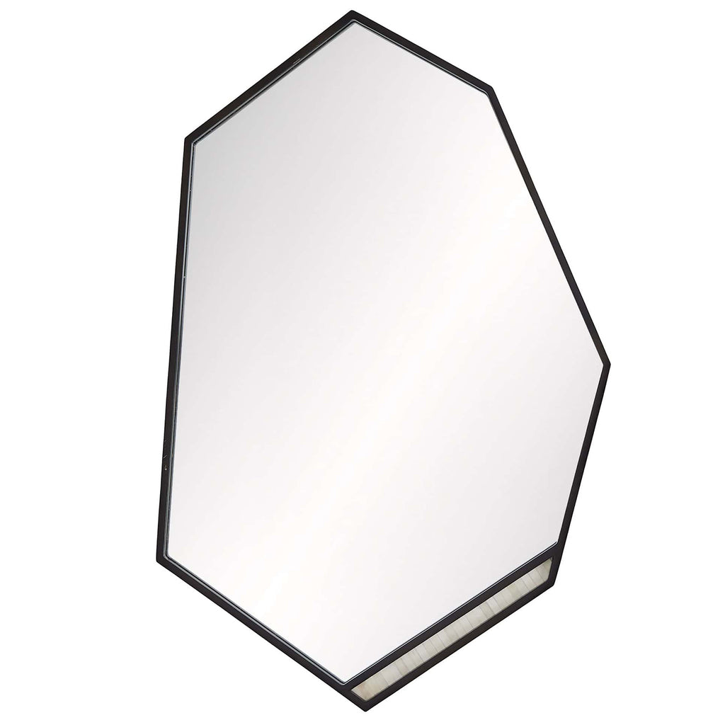 Arteriors Home lighting embodies the perfect balance of form and function, creating an ambiance that is both captivating and inviting. Whether you desire a statement piece for your entryway, an artfully distressed mirror for your living room, or a sleek and minimalist design for your bathroom, Arteriors Home has the perfect mirror to elevate your space to new heights. The Arteriors Talland, with its bold, angular silhouette, is reminiscent of a soldier’s shield. Detailed with a contrasting strip of natural bone inlay, the faceted, bronze iron framed mirror cuts a striking reflection. The wall mirror is fitted with a cleat for hanging. Finish will vary.