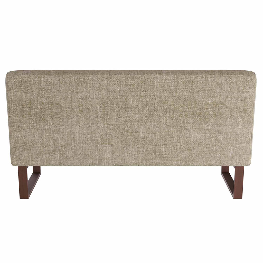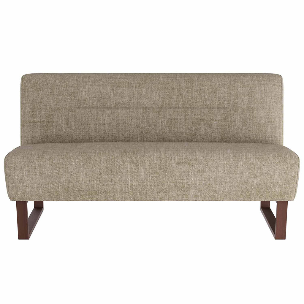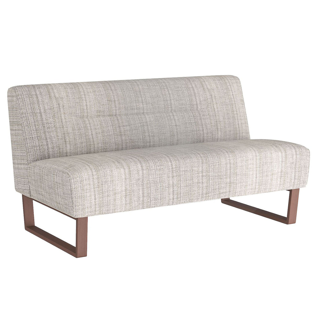Ideal for dining or lounging, the Arteriors Valeswood settee is versatile and elegant. The armless love seat is created with a linear tufting detail. Inspired by midcentury seating, the settee is crafted with a dark walnut sled base, which creates a simple yet striking profile. Finish will vary.