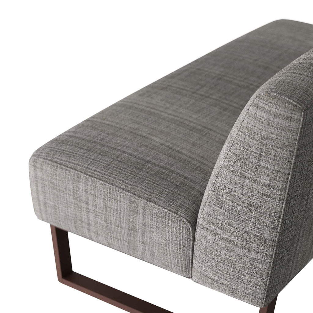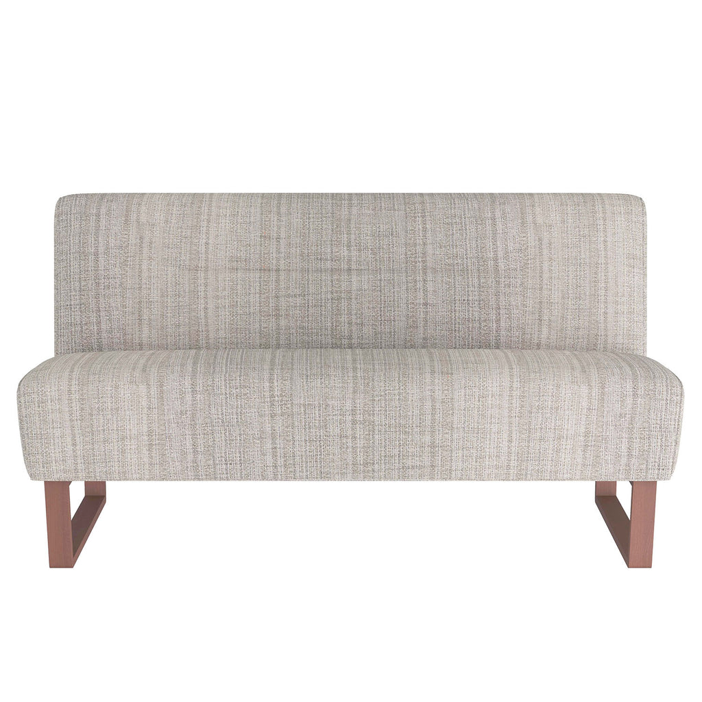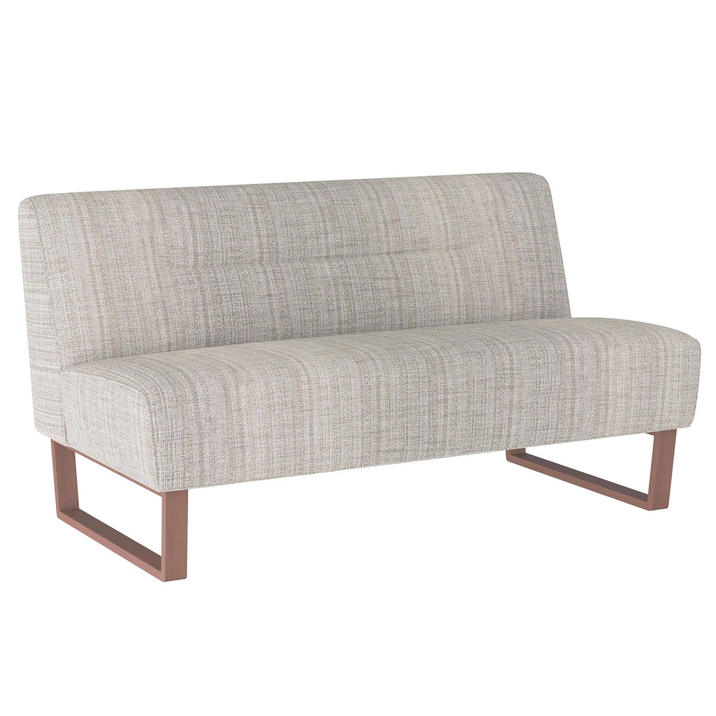 Ideal for dining or lounging, the Arteriors Valeswood settee is versatile and elegant. The armless love seat is created with a linear tufting detail. Inspired by midcentury seating, the settee is crafted with a dark walnut sled base, which creates a simple yet striking profile. Finish will vary.