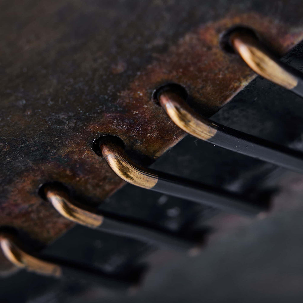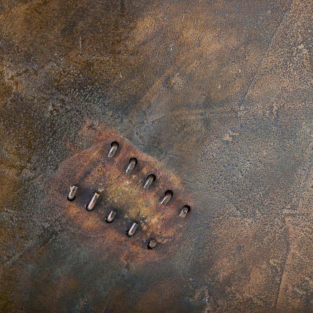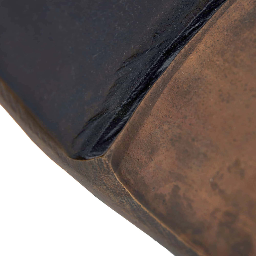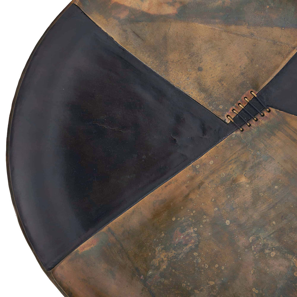 Inspired by mid-century porcelain, the Arteriors Virgil wall plaque is reimagined in a color-blocked design of contrasting cast aluminum in bronze and antique brass finishes. Stapled, corseted detail and a gentle lipped edge lend an artisan quality to the commanding piece. The plaque is fitted with a security cleat for hanging. Finishes will vary.