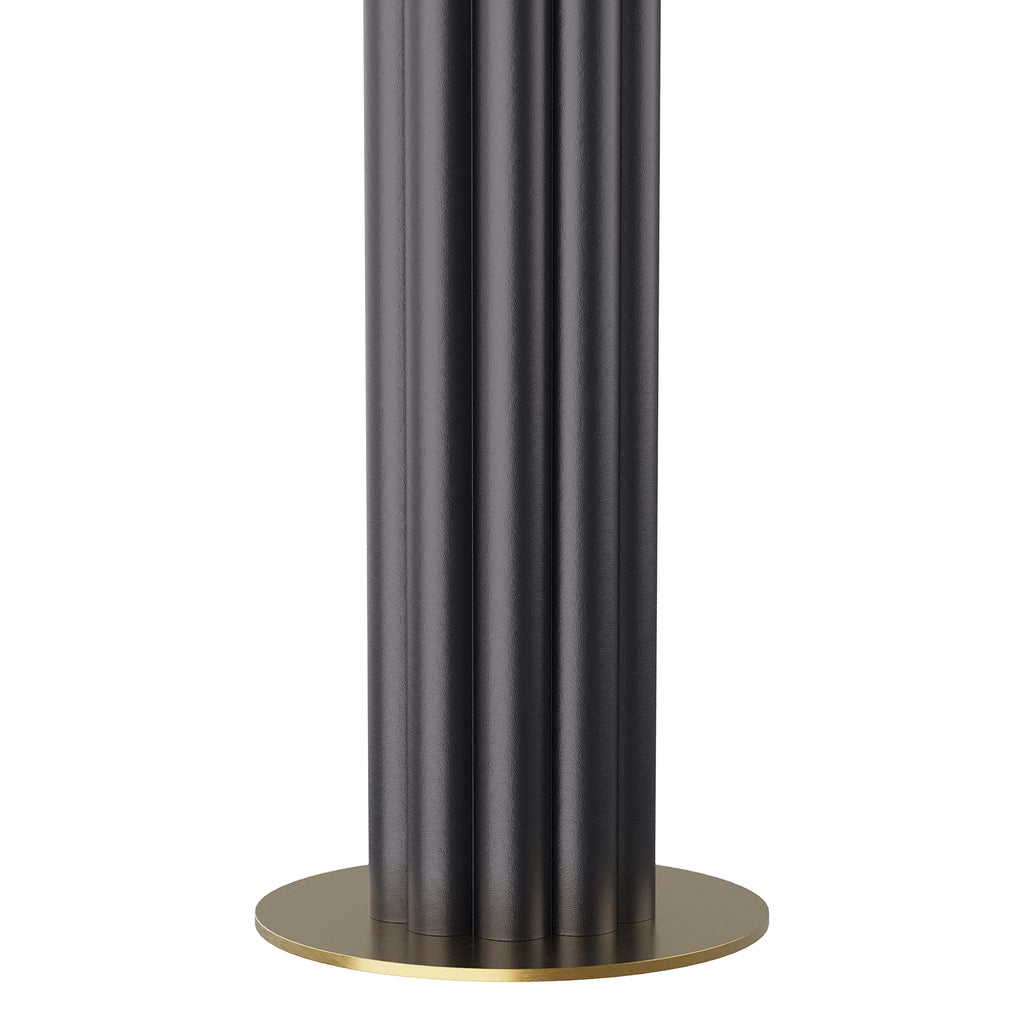 Arteriors Home lighting embodies the perfect balance of form and function, creating an ambiance that is both captivating and inviting. Arteriors Home floor lamps not only provide functional lighting but also serve as stunning statement pieces. Their unique designs and materials can create a focal point in any room, elevating the overall aesthetic. At home in modern or traditional environments alike, our Arteriors Warner floor lamp is crafted as in a cluster of reed shapes forming a scalloped column in black resin. Bands of high-contrast antique brass steel embellish the column, also forming the disc base. The stately lamp is detailed with an antique brass sphere finial and a tapered off-white linen shade lined in off-white cotton. Finish will vary.
