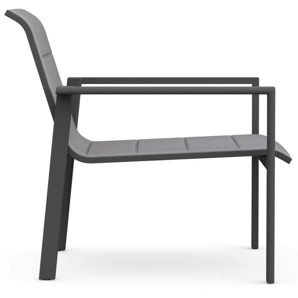 The Amalfi Club Chair by Azzurro Living offers a sleek design that seamlessly blends with its surroundings. Crafted with Batyline Sling Fabric by Serge Ferrari, renowned for its exceptional outdoor durability and easy maintenance, this chair enhances outdoor living. Its soft and comfortable design features built-in high-density cushions. Made from powder-coated aluminum, it withstands tough conditions while maintaining its appealing looks. Surround yourself with good taste and relax in the Amalfi Club Chair.