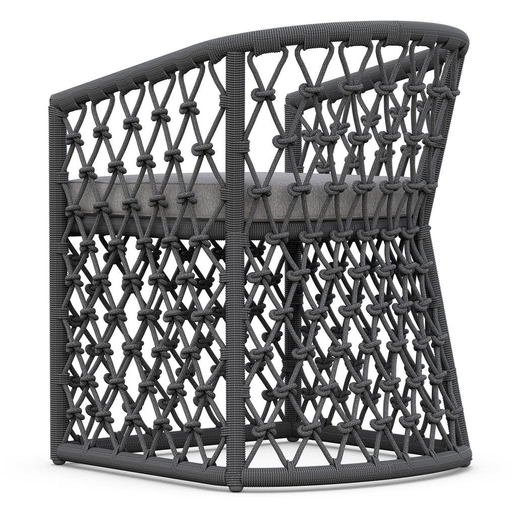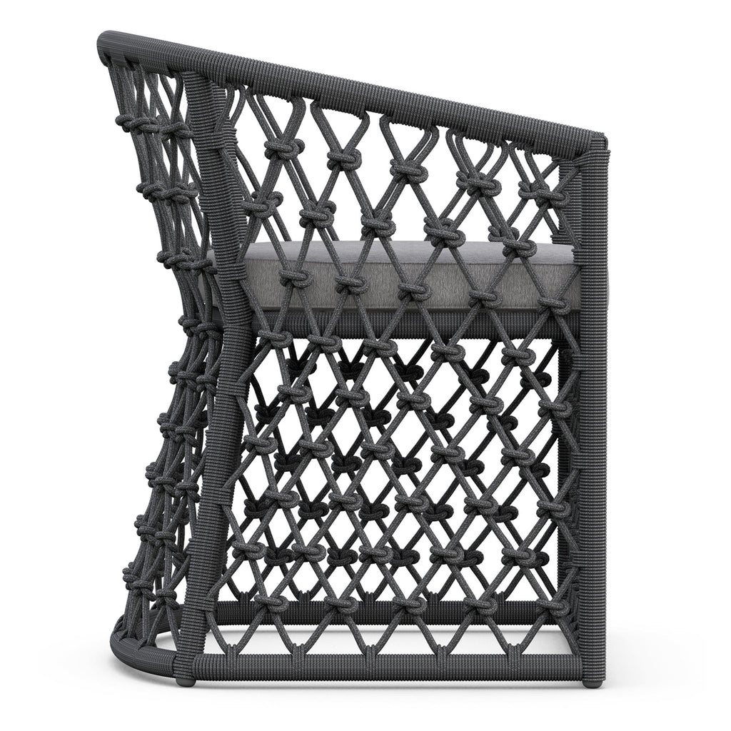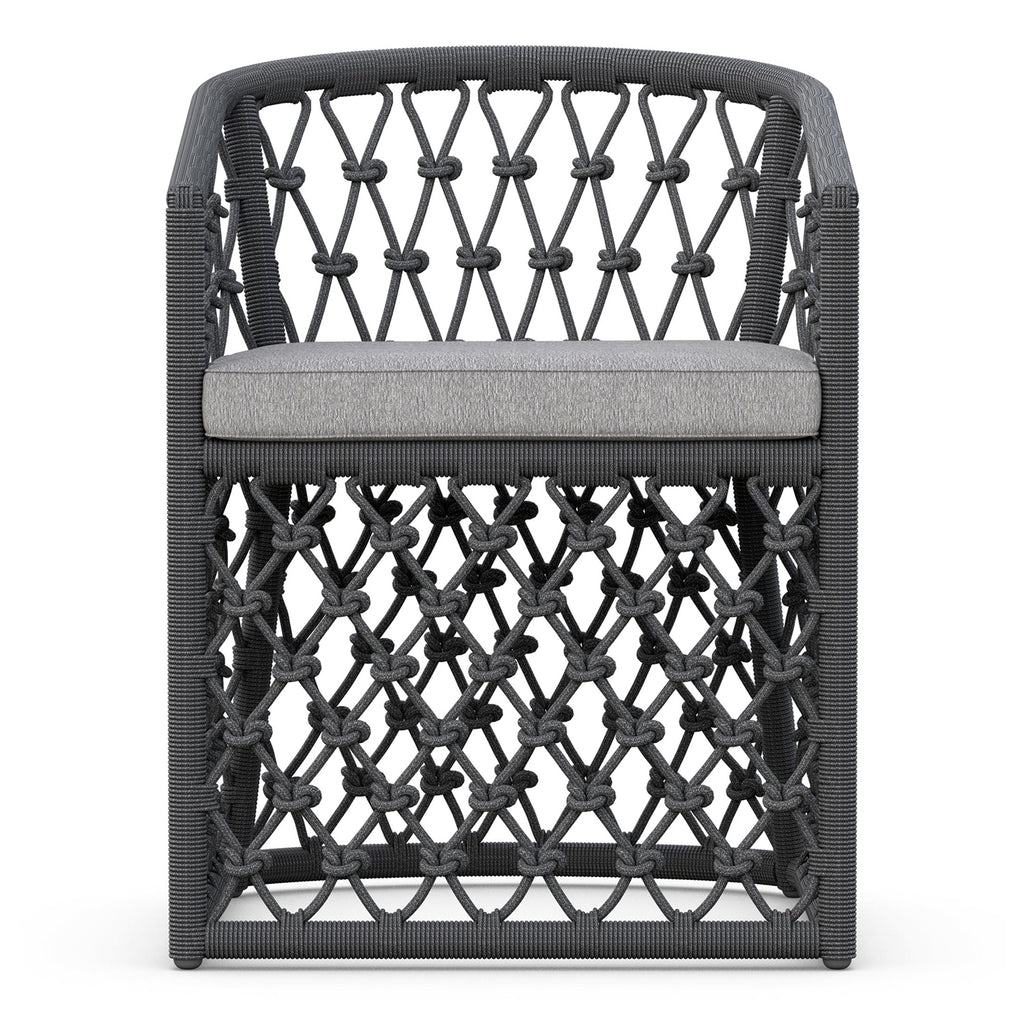 The Amelia Dining Chair by Azzurro Living is a beautifully crafted piece of furniture that will elevate your dining space. Its sleek design features a hand-knotted rope pattern, crisp lines, and a powdercoated aluminum frame. The all-weather rope and plush chenille fabric ensure durability and luxury. Upgrade your dining space with this stunning piece of furniture.