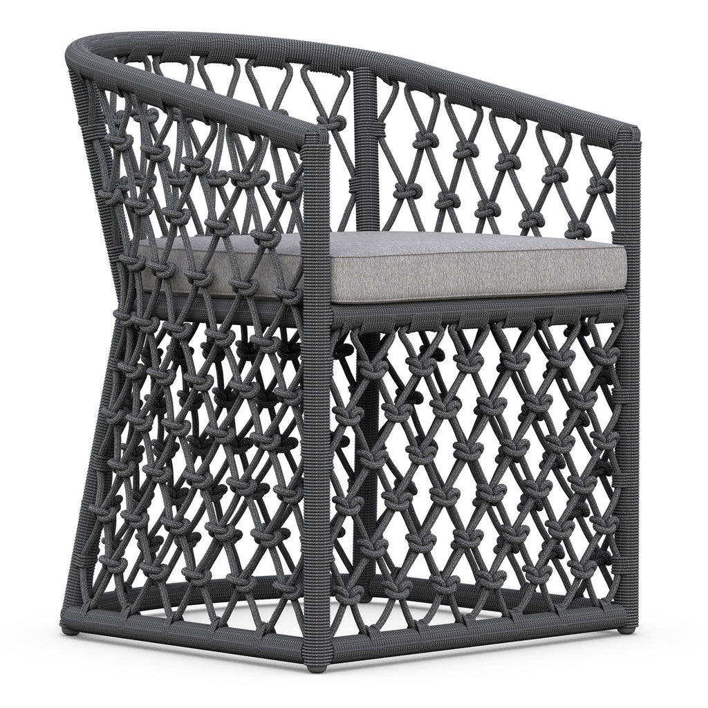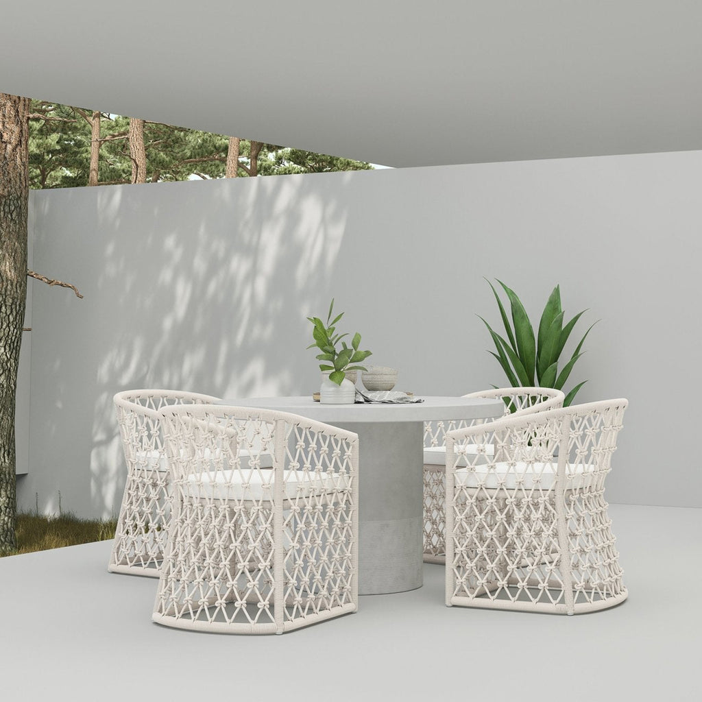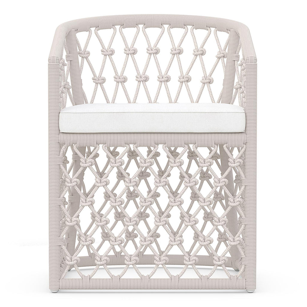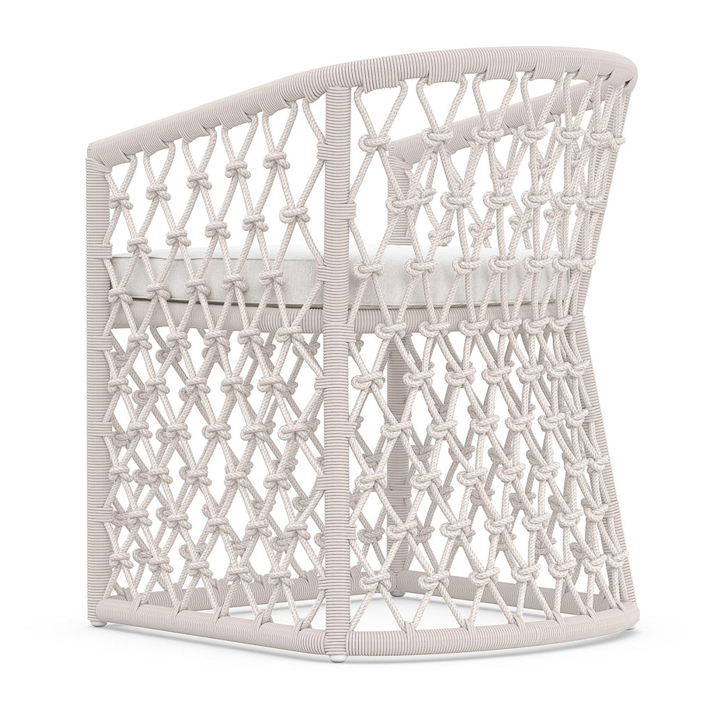 The Amelia Dining Chair by Azzurro Living is a beautifully crafted piece of furniture that will elevate your dining space. Its sleek design features a hand-knotted rope pattern, crisp lines, and a powdercoated aluminum frame. The all-weather rope and plush chenille fabric ensure durability and luxury. Upgrade your dining space with this stunning piece of furniture.
