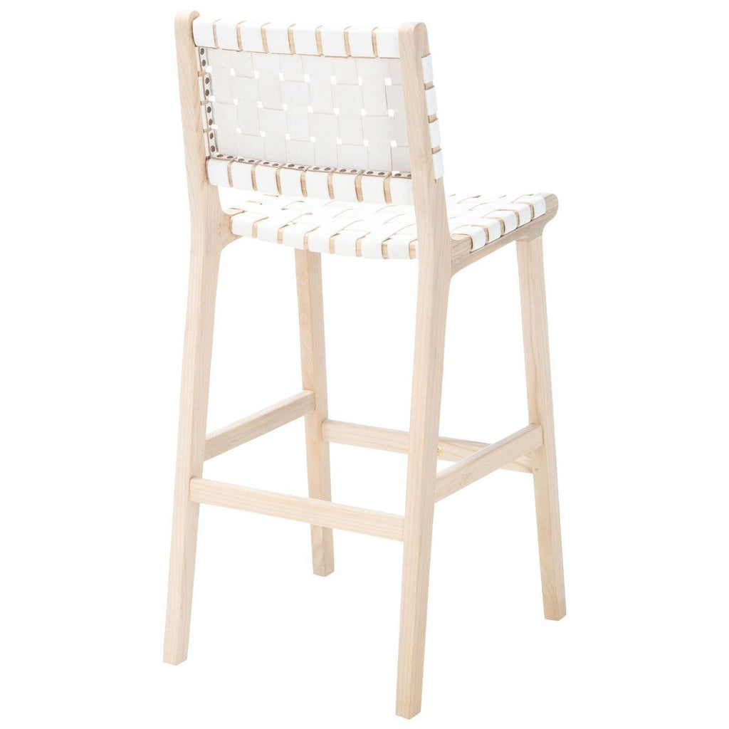 Classic forms are brilliantly restyled for today’s elevated dining needs in this contemporary coastal bar stool. The open natural wood frame brings additional decorative depth to the basket-woven leather seat and back, making it a favorite of interior designers.