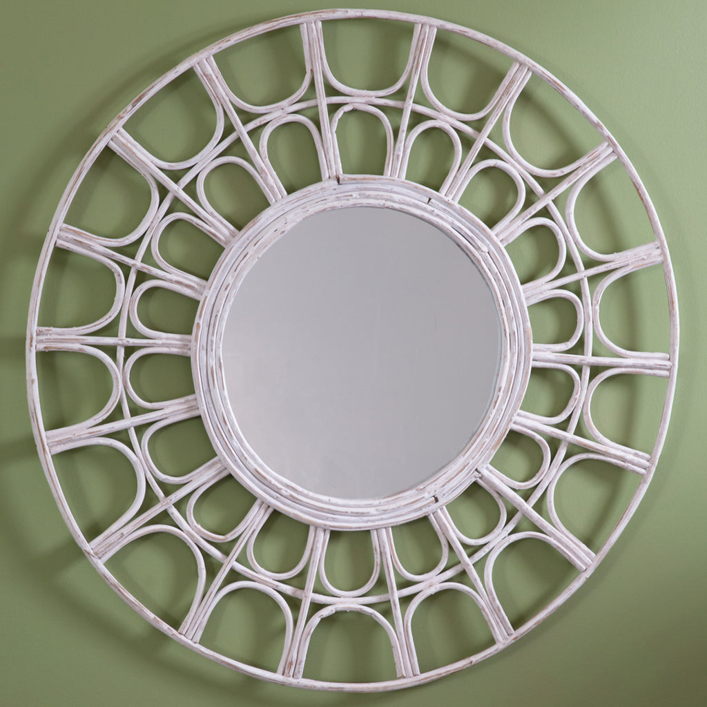 Feature a glimpse of the islands in your own home with this rattan mirror. Hang by itself or in a gallery wall. This item is made out of rattan and hangs with its keyhole hanger.