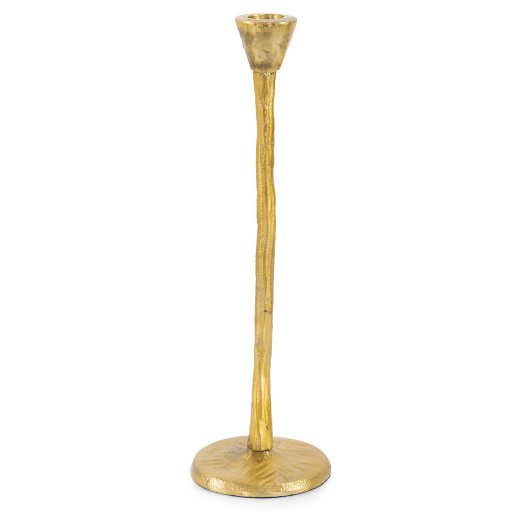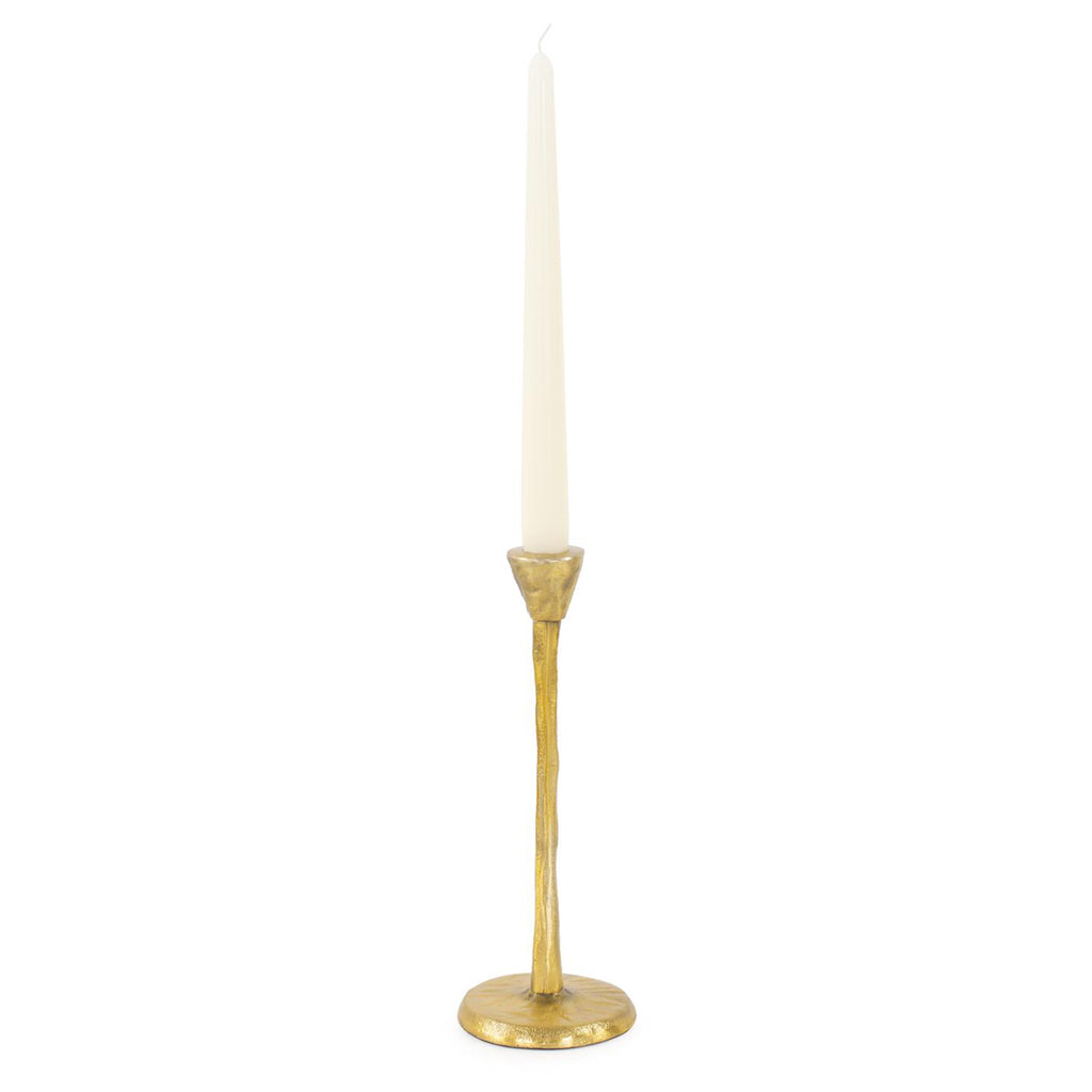 Illuminate your surroundings with a design that meets the soothing glow of candlelight. This candle holder is meticulously crafted to accommodate tapered candles, creating a warm and inviting atmosphere in your space. Its textured surfaces resemble the allure of brushed gold, adding a touch of opulence and sophistication to your decor. Whether gracing your dining table, mantle, or any setting where candlelight sets the mood, this piece serves as both functional accessories and decorative accents.
