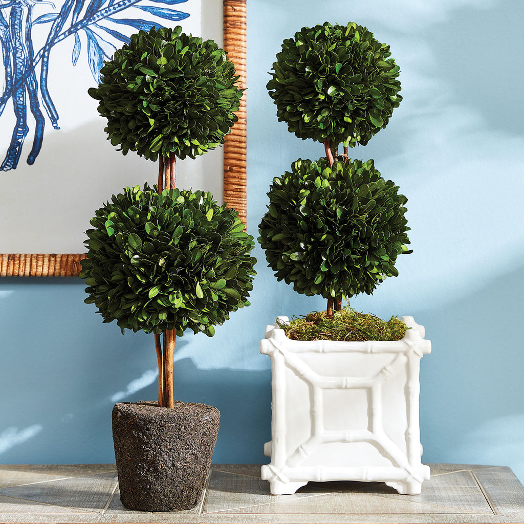 Introducing a novel idea, real English boxwoods with their own standard root ball, ready to drop in to your favorite vessel. It's never been easier. Preserved and painstakingly assembled by our masterful topiary artists, and now customizable to your choice of pot. The possibilities are endless!