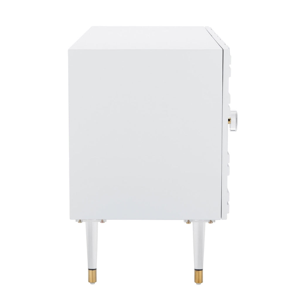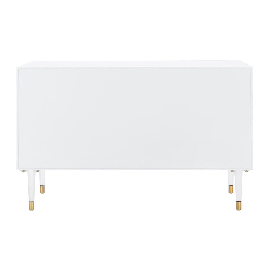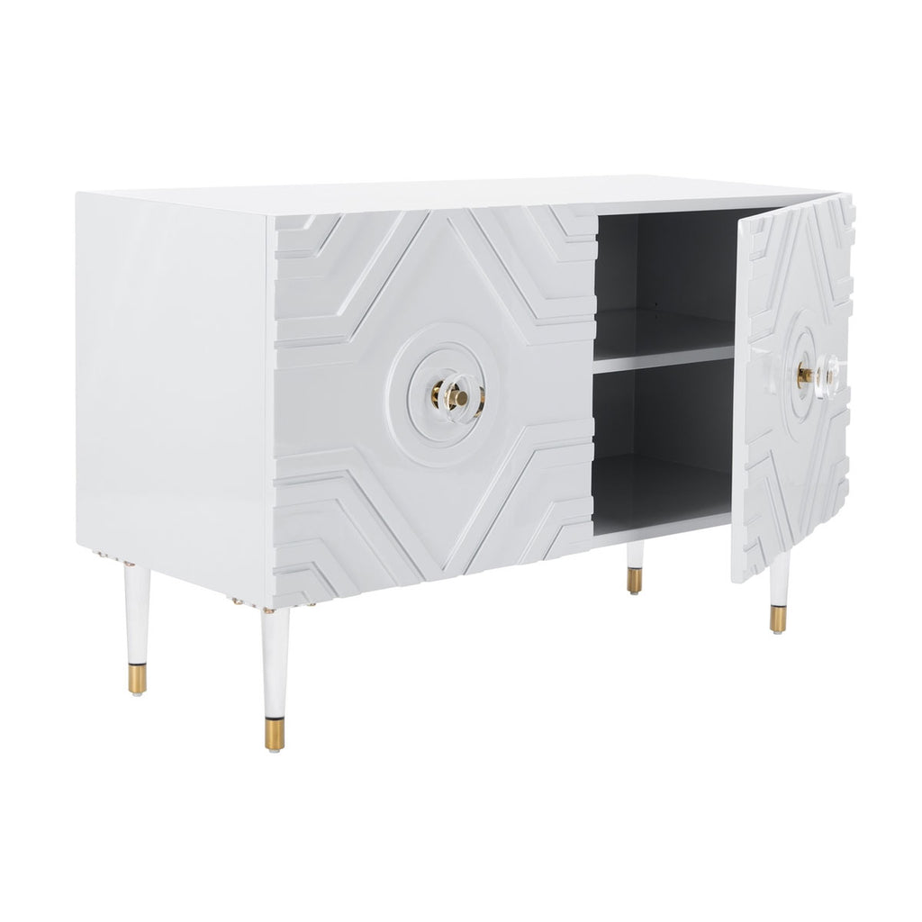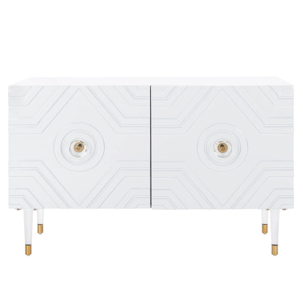 An expression of contemporary glamour, this alluring grey and gold diamond sideboard elevates the style of any dining room. Its deluxe solid wood craftsmanship highlights its exquisite raised diamond pattern, while its brass finish adds grace and warmth.