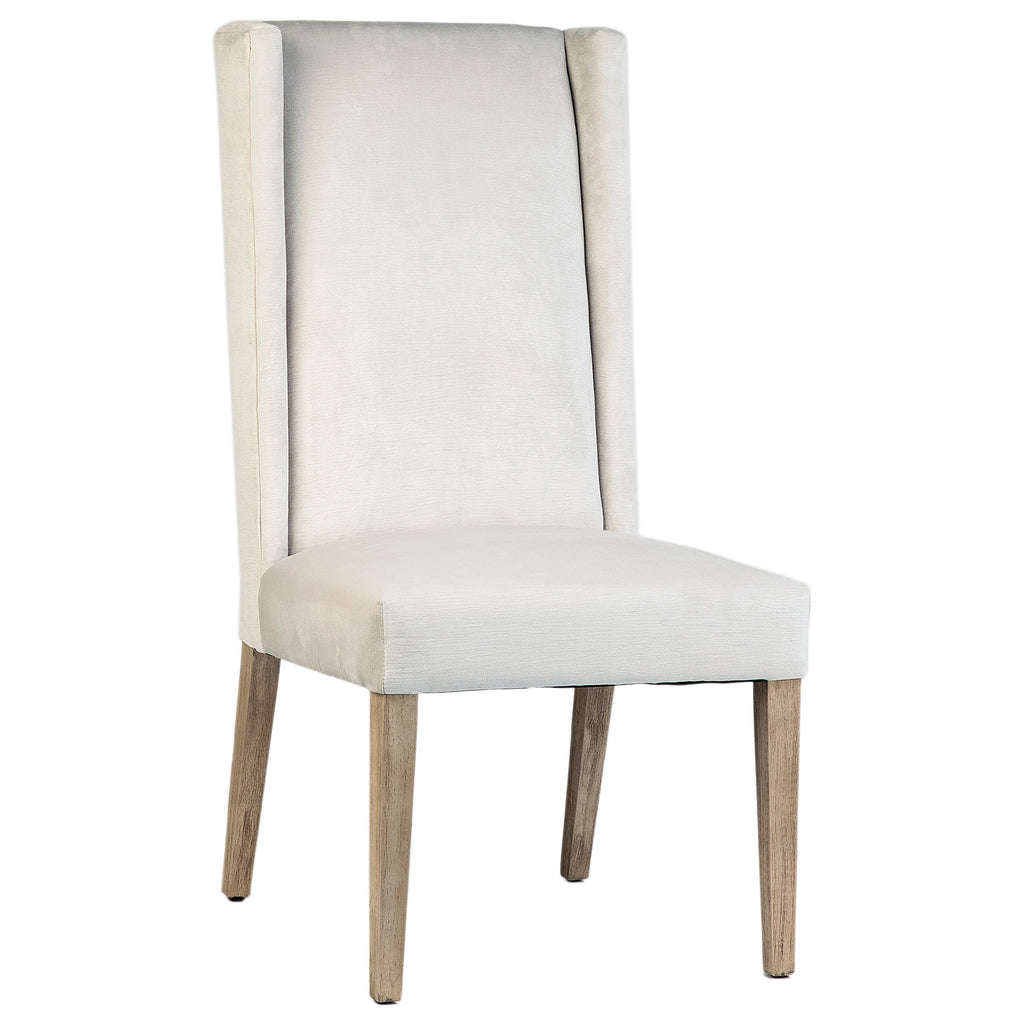 This beautiful velvet parsons side chair fits seemlessly with any décor. Finished in an elegant white sand with solid rubberwood legs these chairs are great stand alone chairs or perfect to be mix and matched to create the perfect look. The high back makes them the perfect chair for entertaining leaving your guests comfortable for hours.