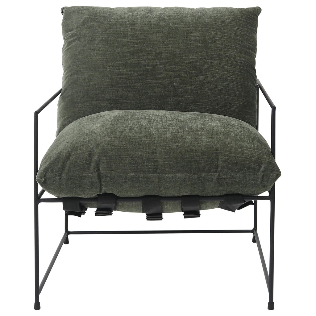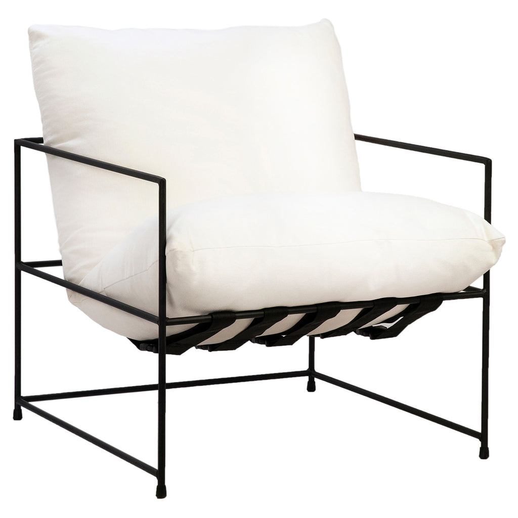 Elevate your space with the clean lines and contemporary look of our cozy Occasional Chair. Striking a linear design crafted with a sleek matte black metal frame and complimented by plush fabric pillow cushions you’ll love sinking in to. Works great as a pair or as a stand-alone accent.