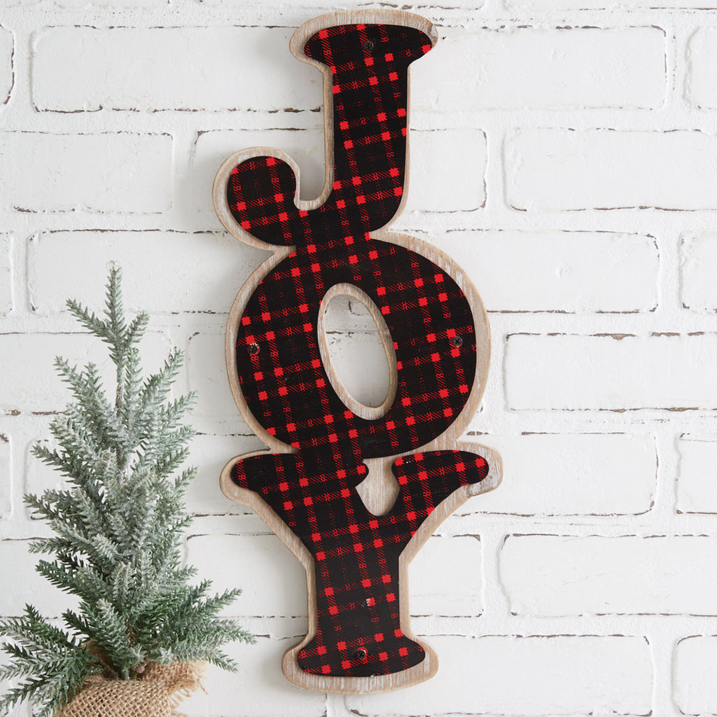 Bring JOY to your festive home with this fun Christmas sign. Item is made of wood with metal accents. To hang, use its sawtooth hanger.
