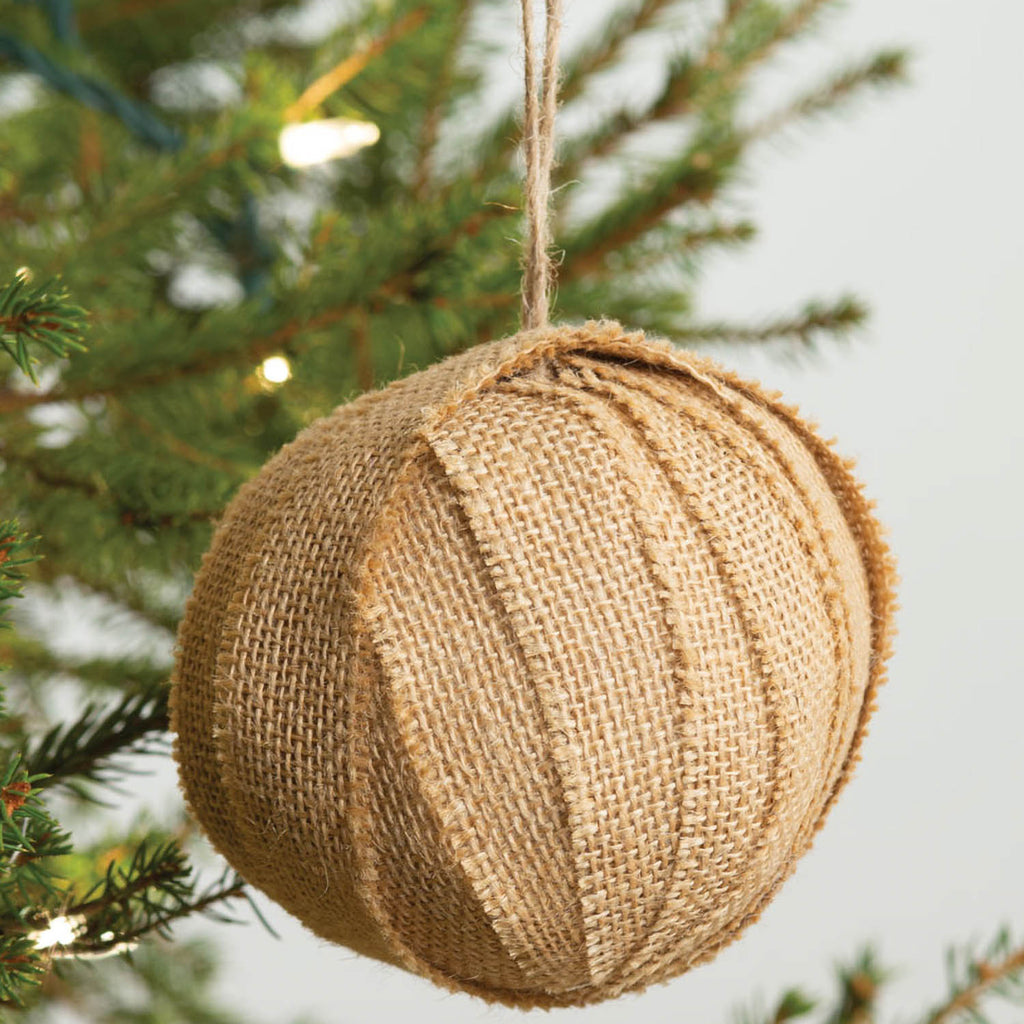 Burlap is a staple for any farmhouse decor. Add a little charm to your Christmas tree with this fabric ornament. 100% cotton is stuffed inside and the outside is wrapped with plaid fabric. This ornament will be around for years to come with its shatterproof design and easy way to store. Display this fabric ball in a bowl or vase with others as well. The item is hung with jute rope.