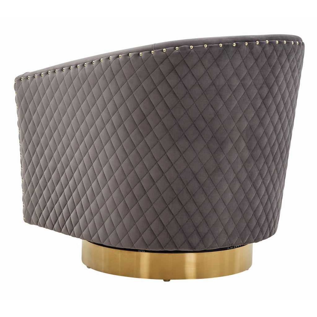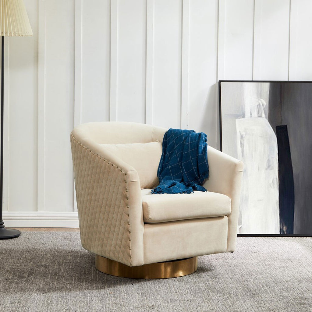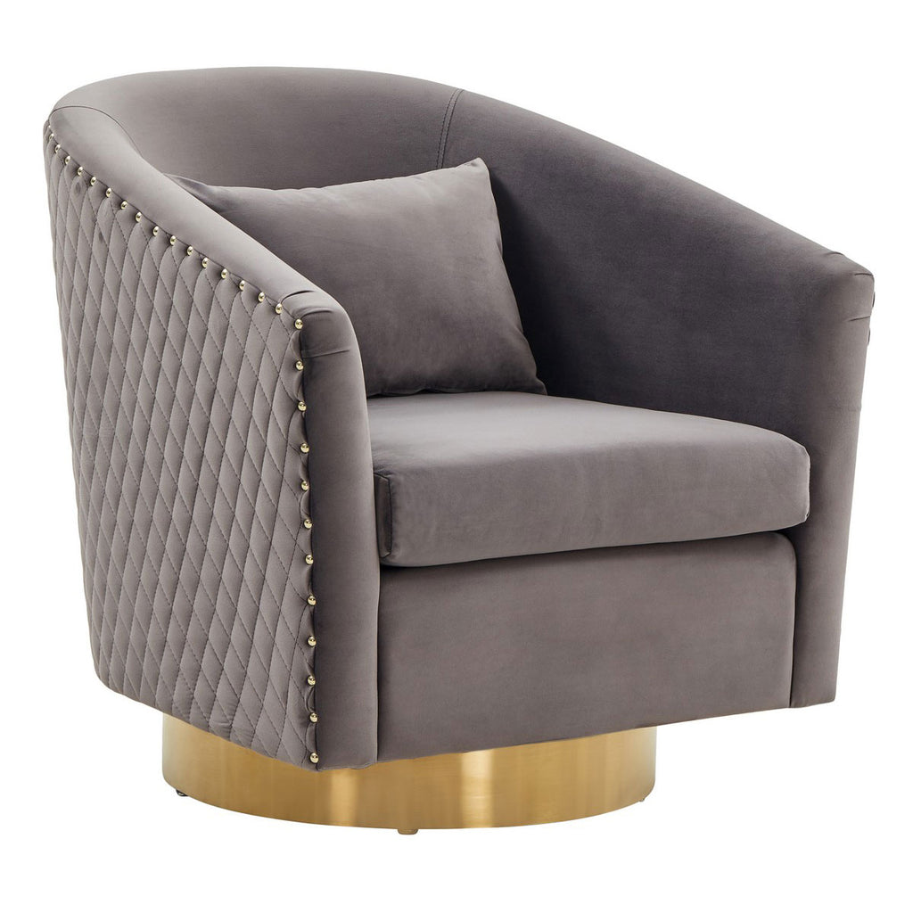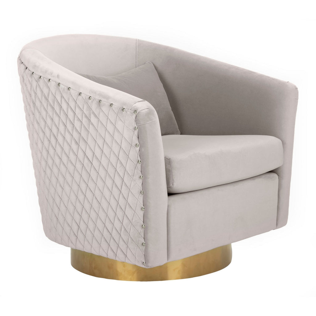 A refined blend of gentle curves and elegant details, the pale taupe Clara Tub Chair will add a chic touch to any contemporary décor. The unique diamond quilted back and shining gold nailhead trim makes a grand statement in the living room or home office.