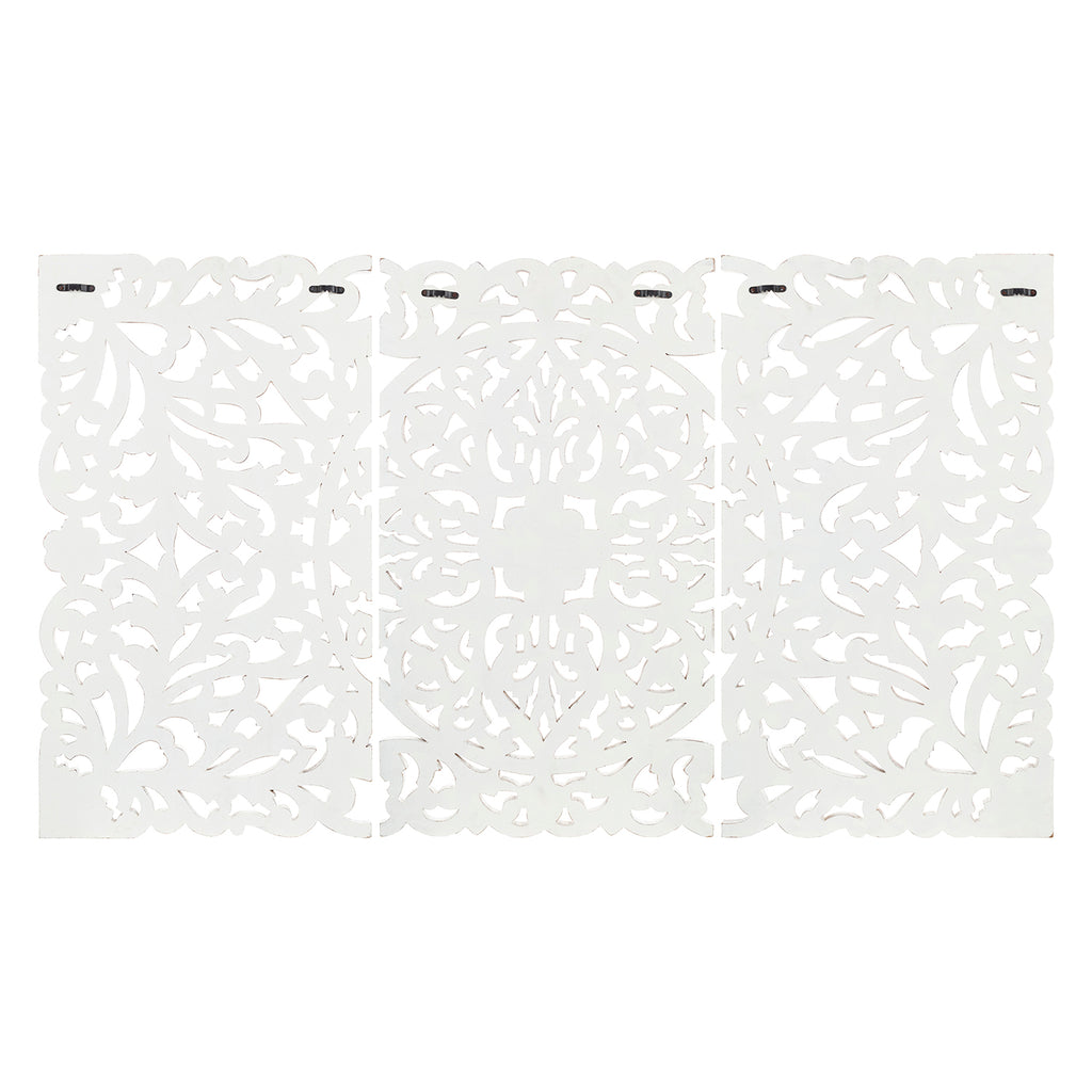 The Cambay Wood Wall Art Set of 3 feautures compelling global inspired designs brimming with elegance and grace! The perfect addition for any home, these pieces will add eclectic charm to any room! Made in India. For optimal product care, wipe clean with a dry cloth.