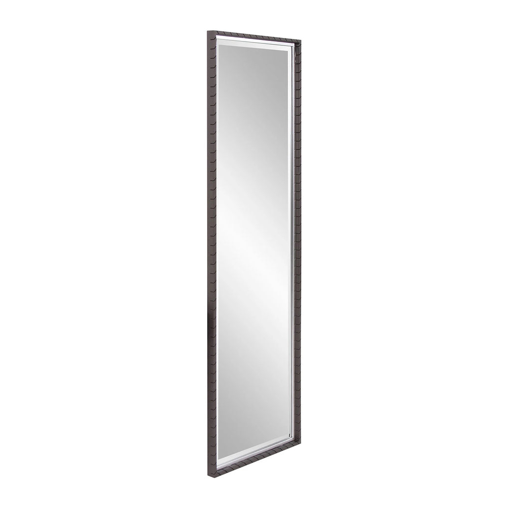 The slim new styling of our Cantera dressing mirror easily compliments today's smaller living spaces. This mirror is contemporary in design with its diagonally cut black iron frame with a silver inset. This mirror gives you the look and feel of today's fast pace lifestyle. D-rings are affixed to the back of the mirror so it is ready to hang right out of the box in either a horizontal or vertical orientation!