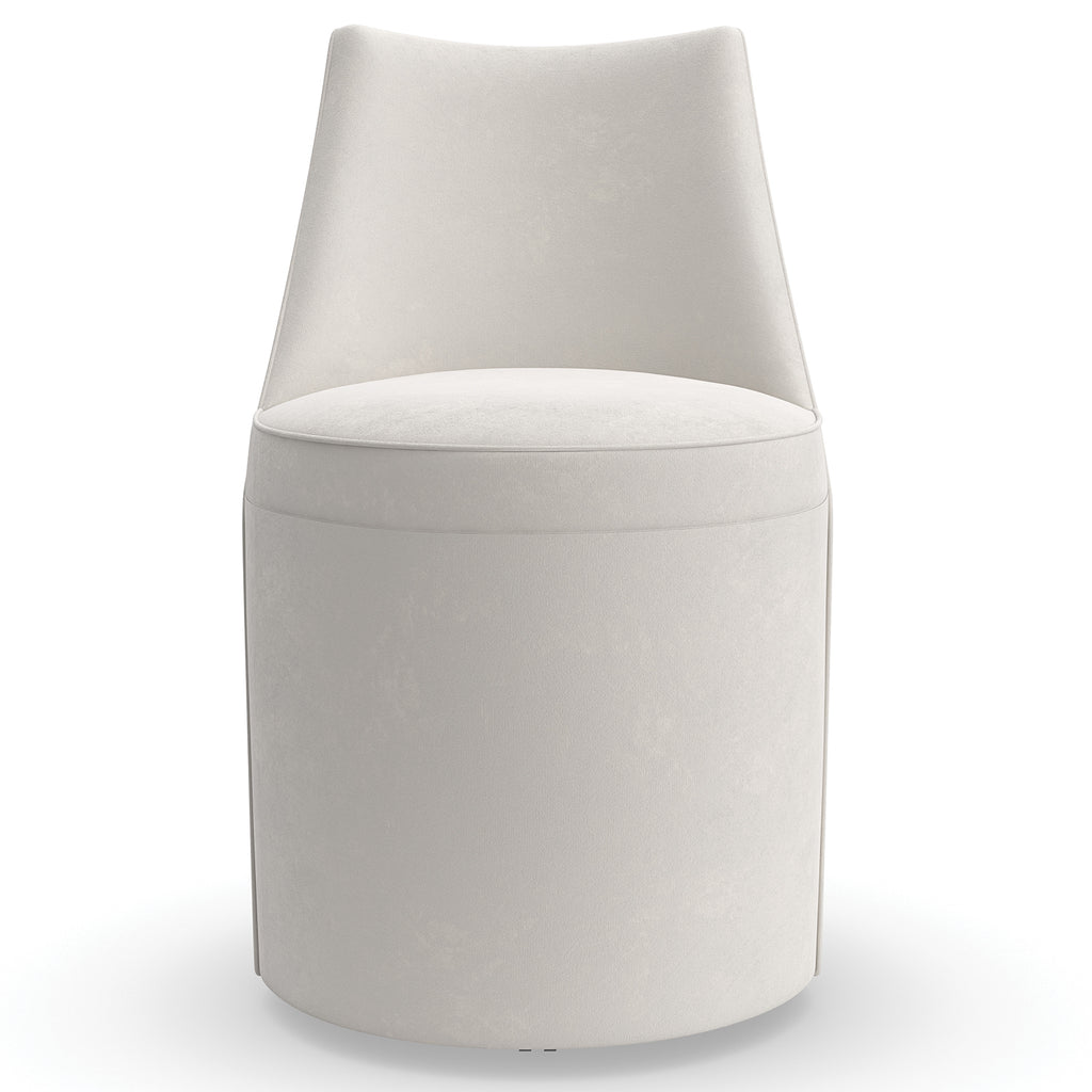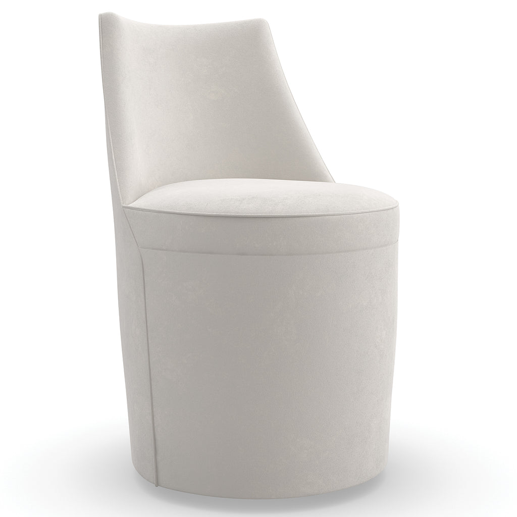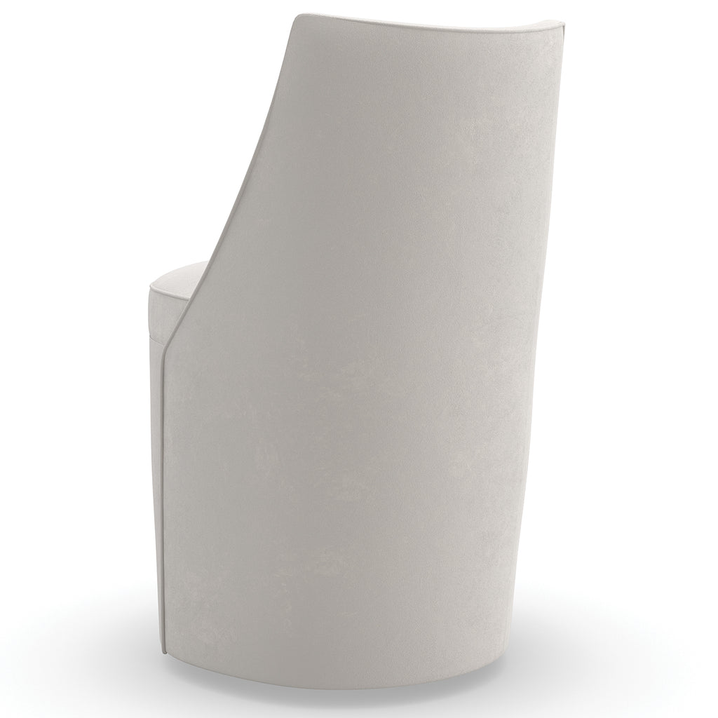 Luxe, yet livable, this sculptural chair introduces a fun, contemporary style to dining room interiors. Its clean modern design features a soft curve to the back and seat, with hidden casters for ease of movement to and from the table. More than a dinner seat, it also pairs exceptionally well with desks and vanities.