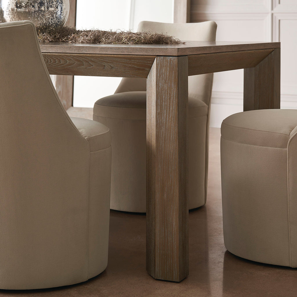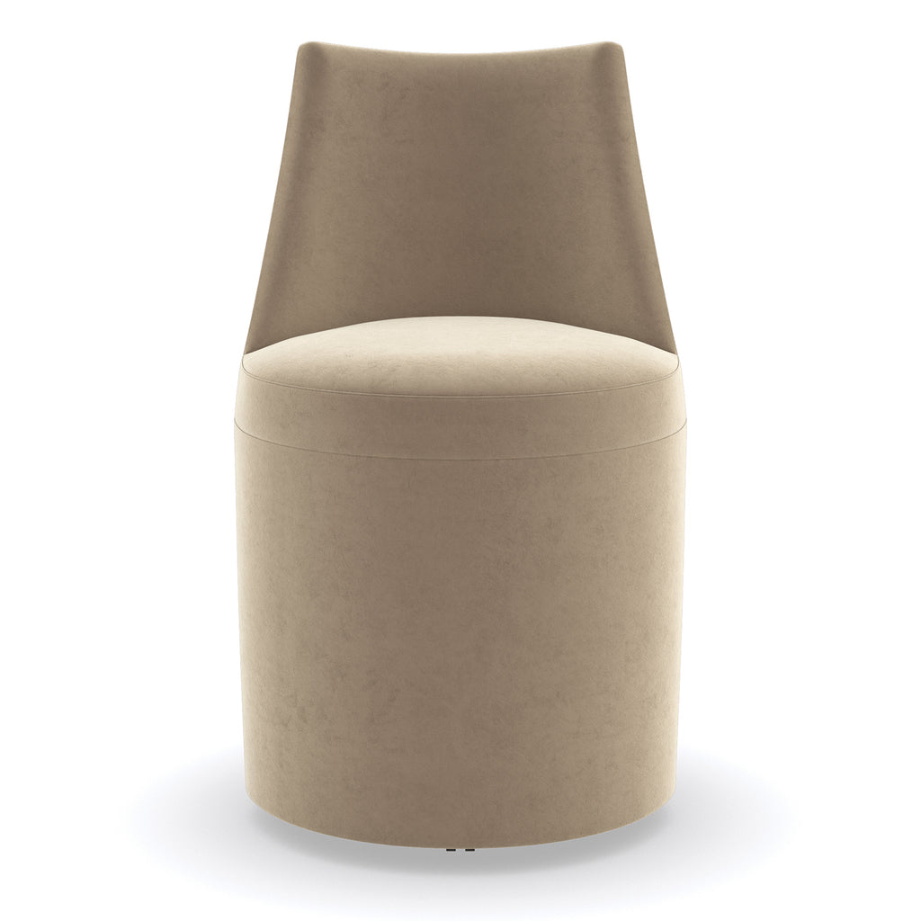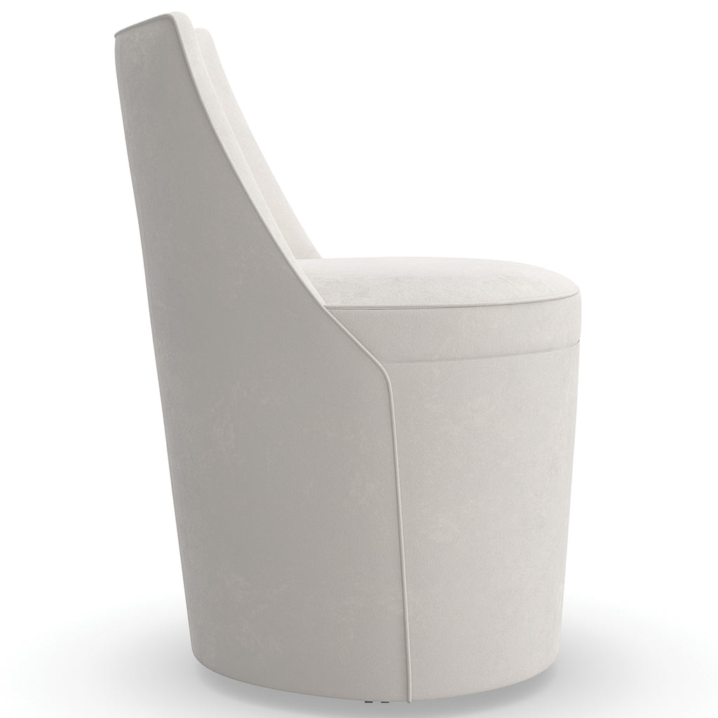 Luxe, yet livable, this sculptural chair introduces a fun, contemporary style to dining room interiors. Its clean modern design features a soft curve to the back and seat, with hidden casters for ease of movement to and from the table. More than a dinner seat, it also pairs exceptionally well with desks and vanities.